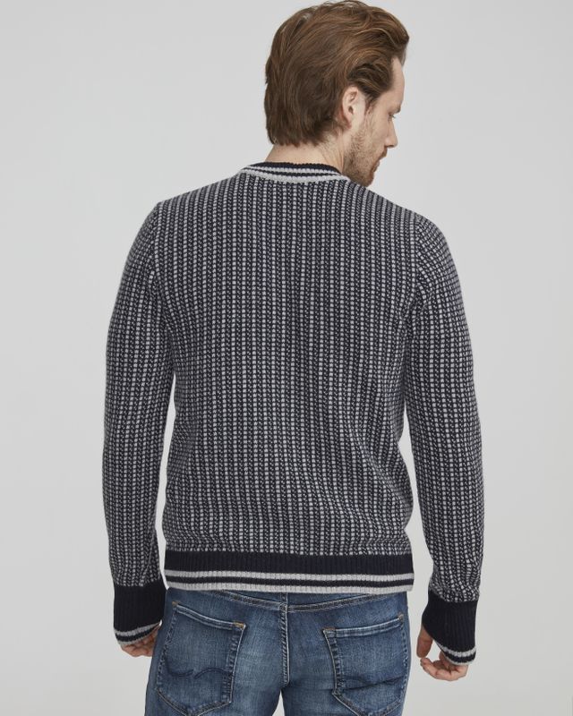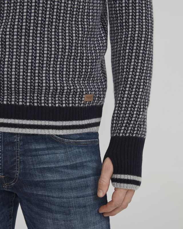 Knitted soft alpaca wool sweater with a classical pattern. Longer sleeves with thumbholes.