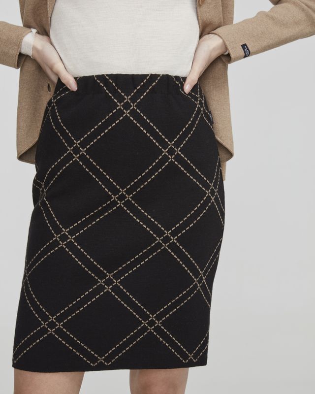 Knitted skirt with a comfortably elastic waistband and straight cut. Available in various seasonal patterns. Made of 100% cotton.