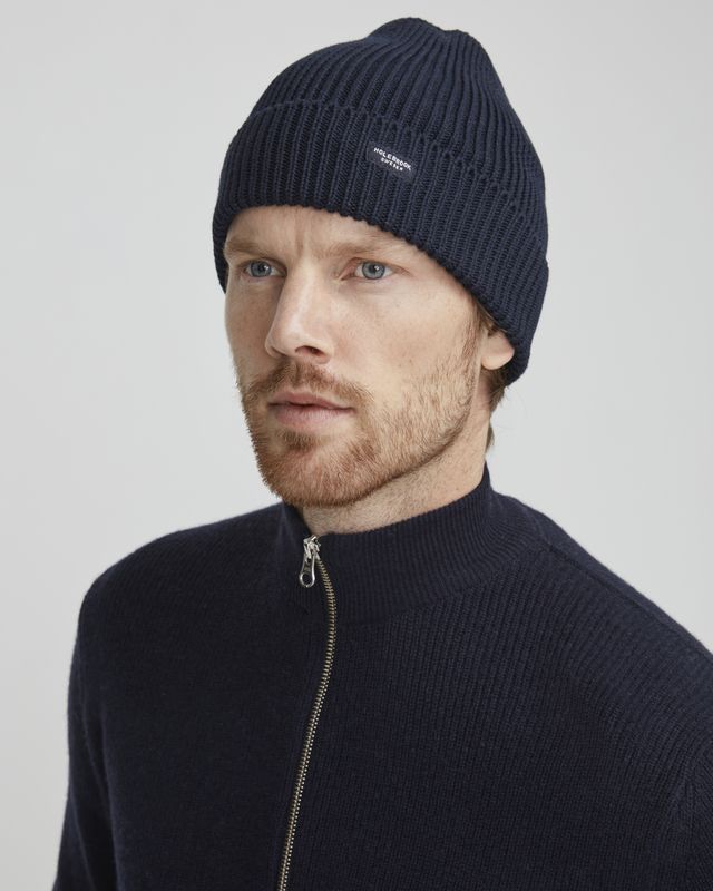 Classic rib knitted hat with folded bottom. Small logotype at front. Made in 100% Cotton.