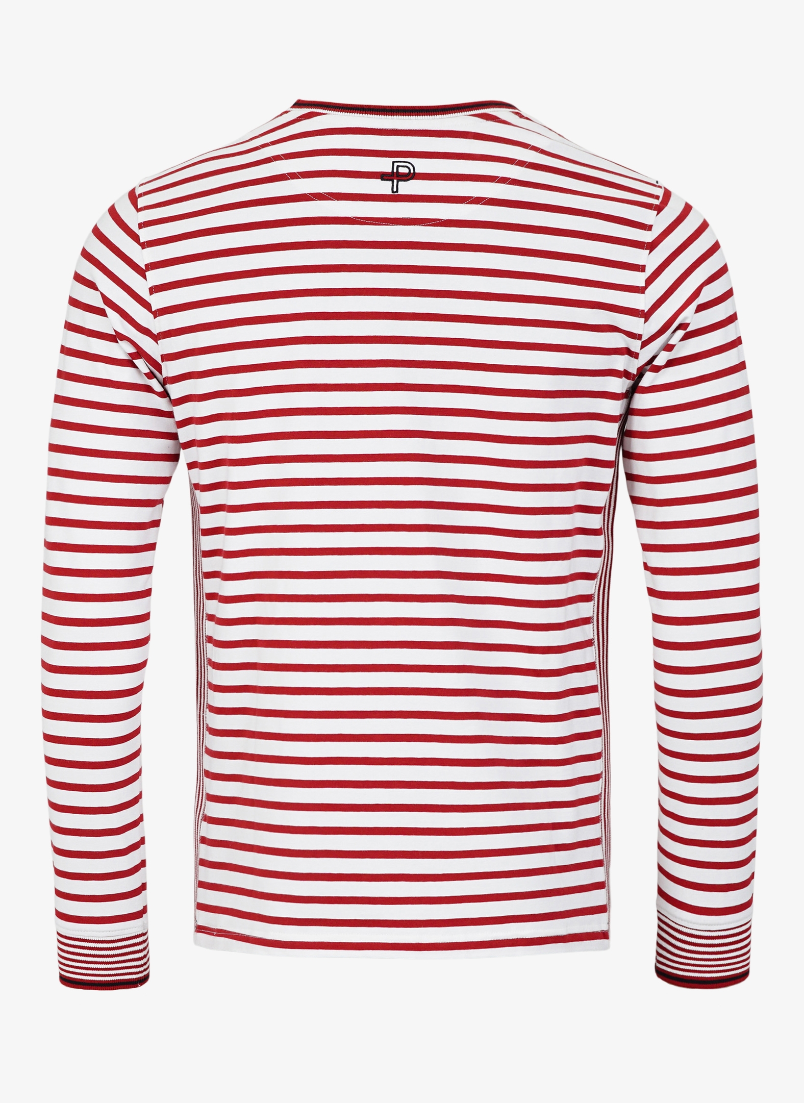 Cotton long-sleeve striped T-shirt. Durable fabric with a decorative vertical stripe on the sides