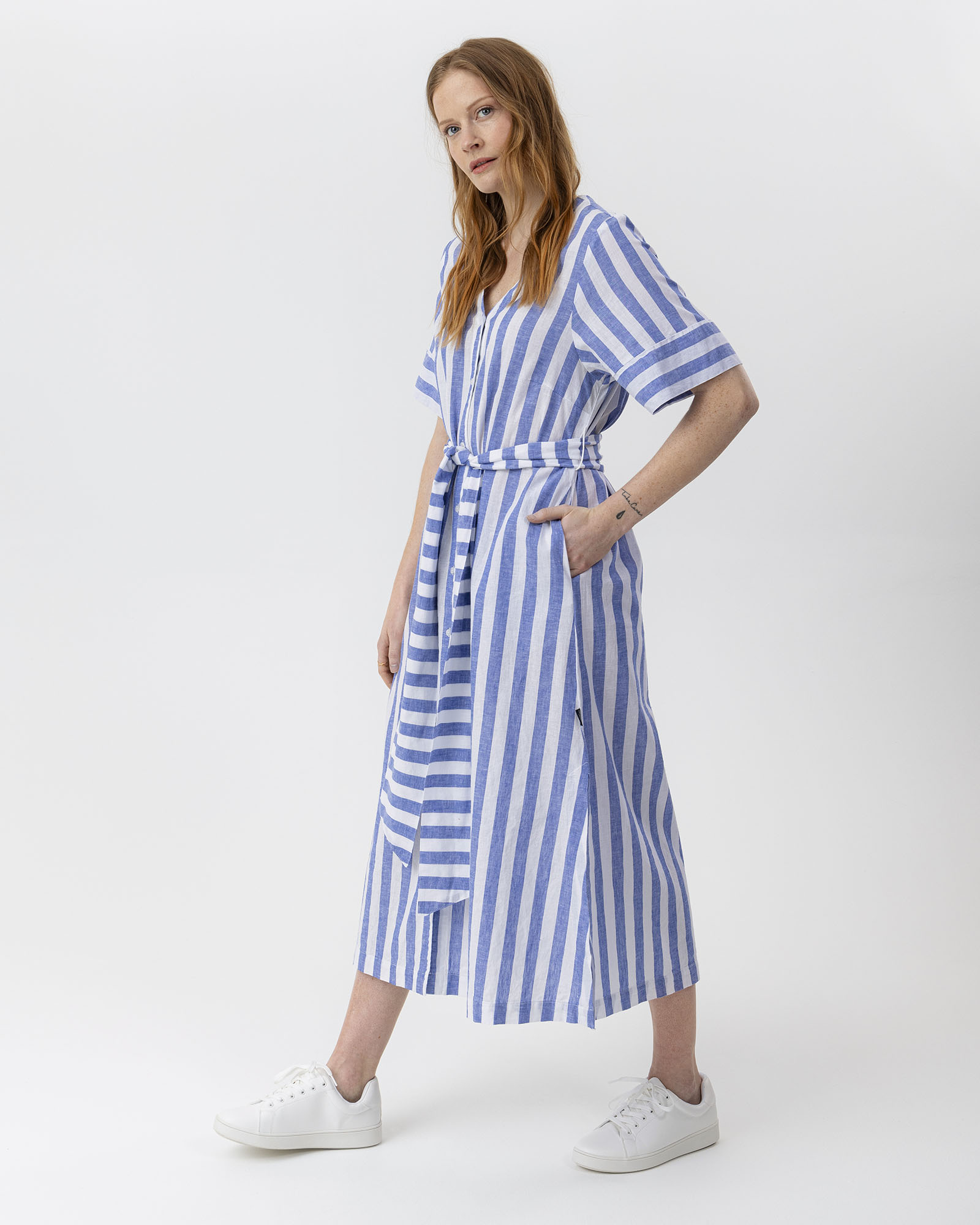 A longer dress in linen and cotton blend. Suitable for wearing with tennis shoes.