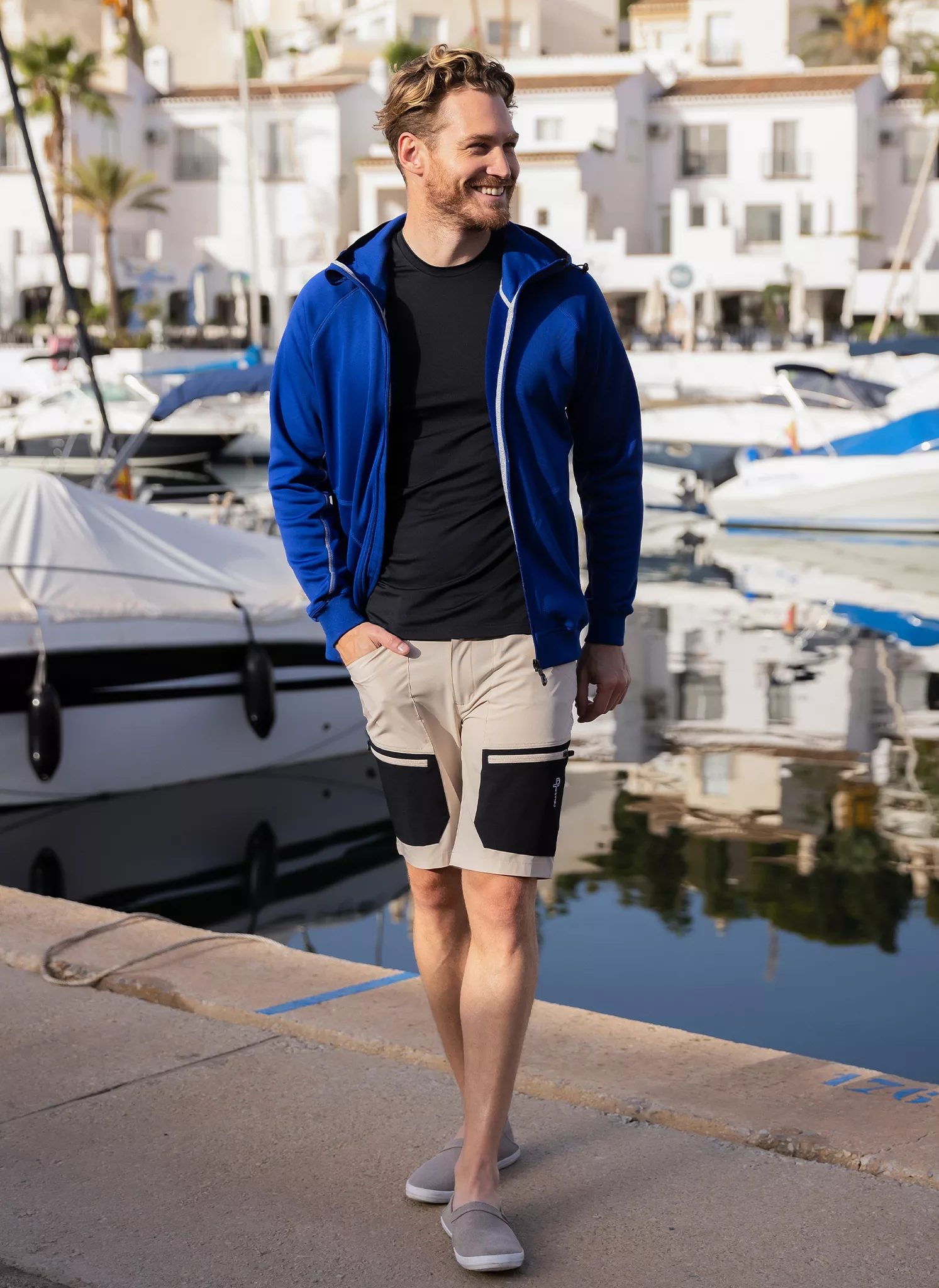 We are confident that these light and quick dry shorts will become a new favorite in your activewear closet. They have a water repellent surface and are reinforced where it is needed the most: at the knees and behind. The Hex Shorts for men are a regular fit, have leg and back pockets with zippers and are your perfect companion on a hike, at sea or during a stroll in the woods.