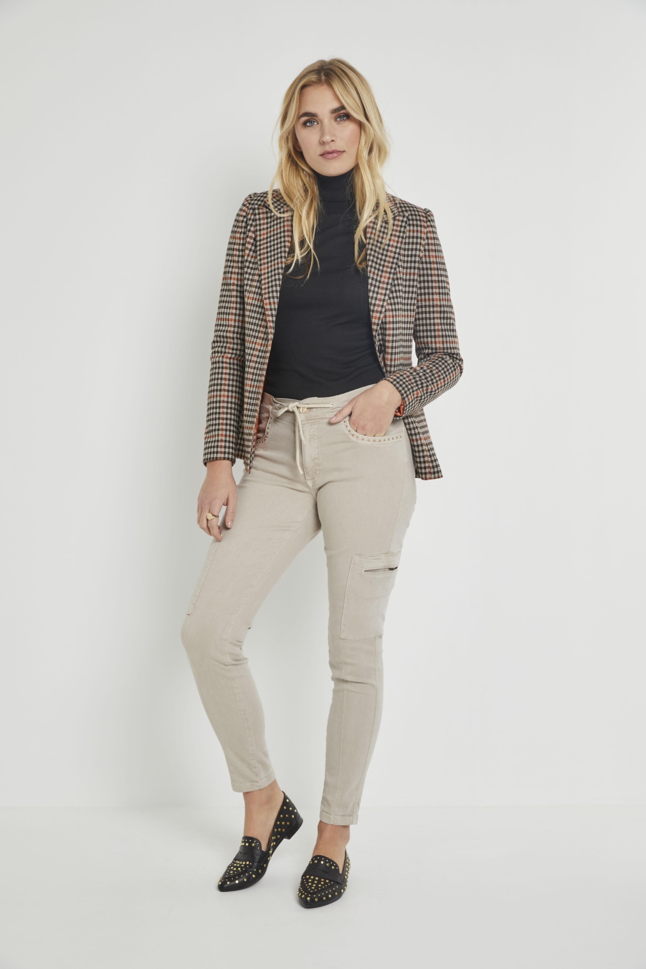 • Trousers have a slightly looser leg at the thigh and narrower at the ankle