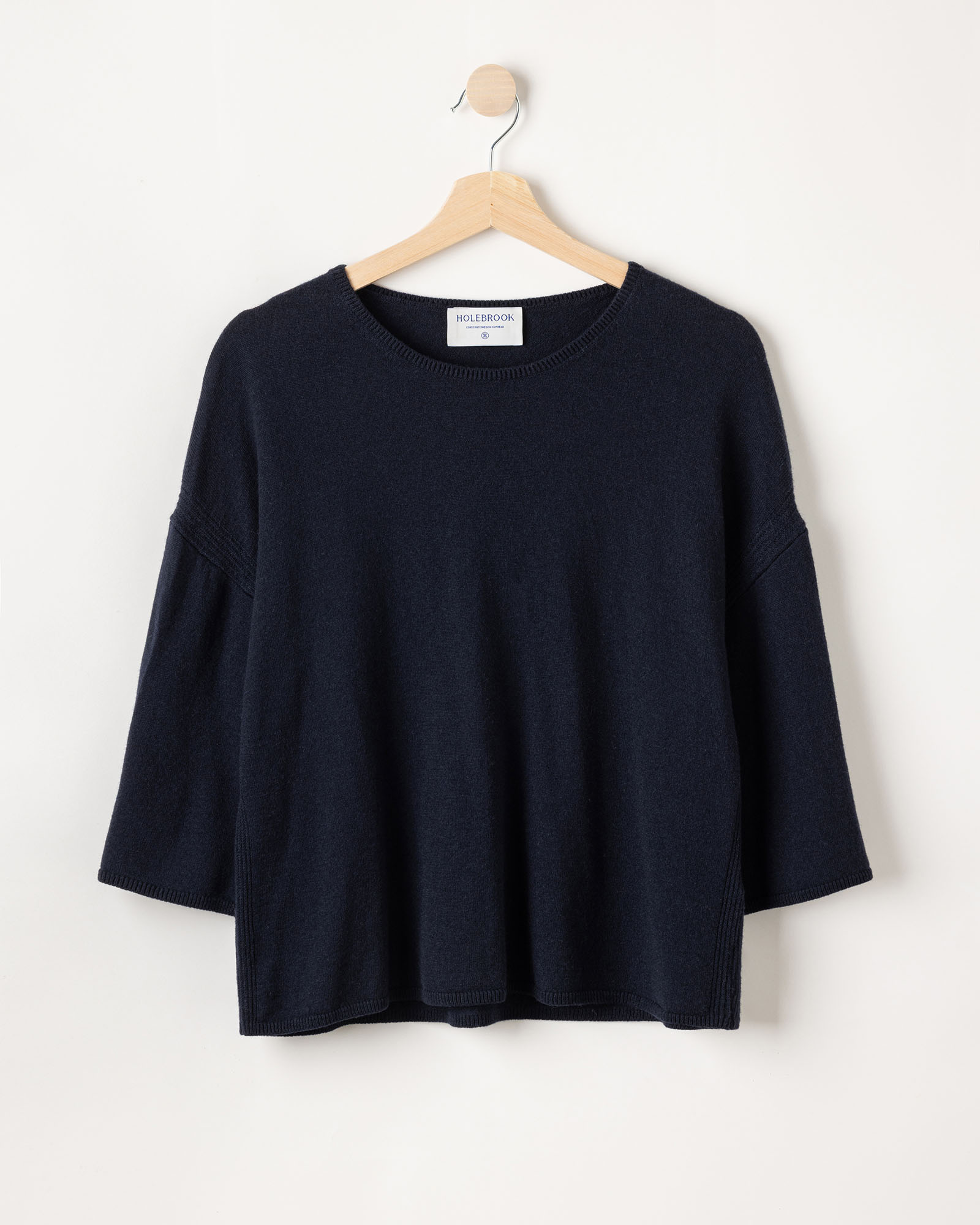 Knitted short-sleeved top in extra fine merino wool. Round neck and french shoulder. Ribbed details on the sides and boxy fit. Match with Wendela Skirt in the same quality. The yarn is marked with Woolmark, which guarantees that the product is made of 100% pure wool that meets quality standards. Sustainably produced in Europe.