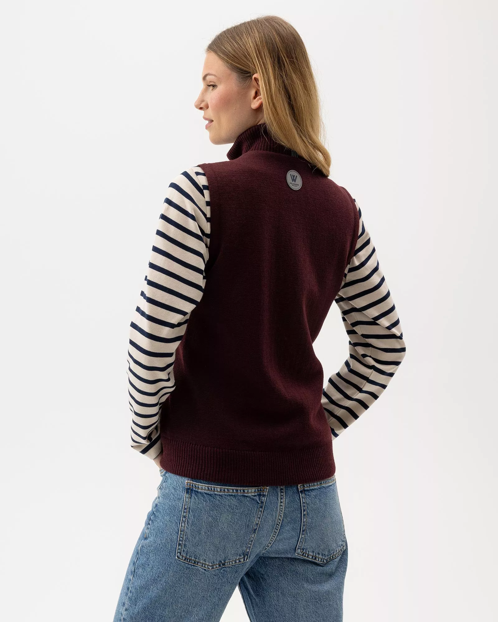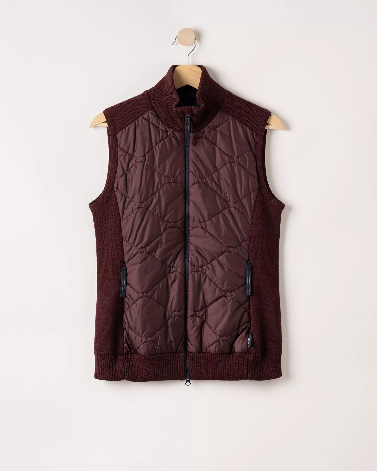 Knitted wool vest with windproof lining and water-repellent details