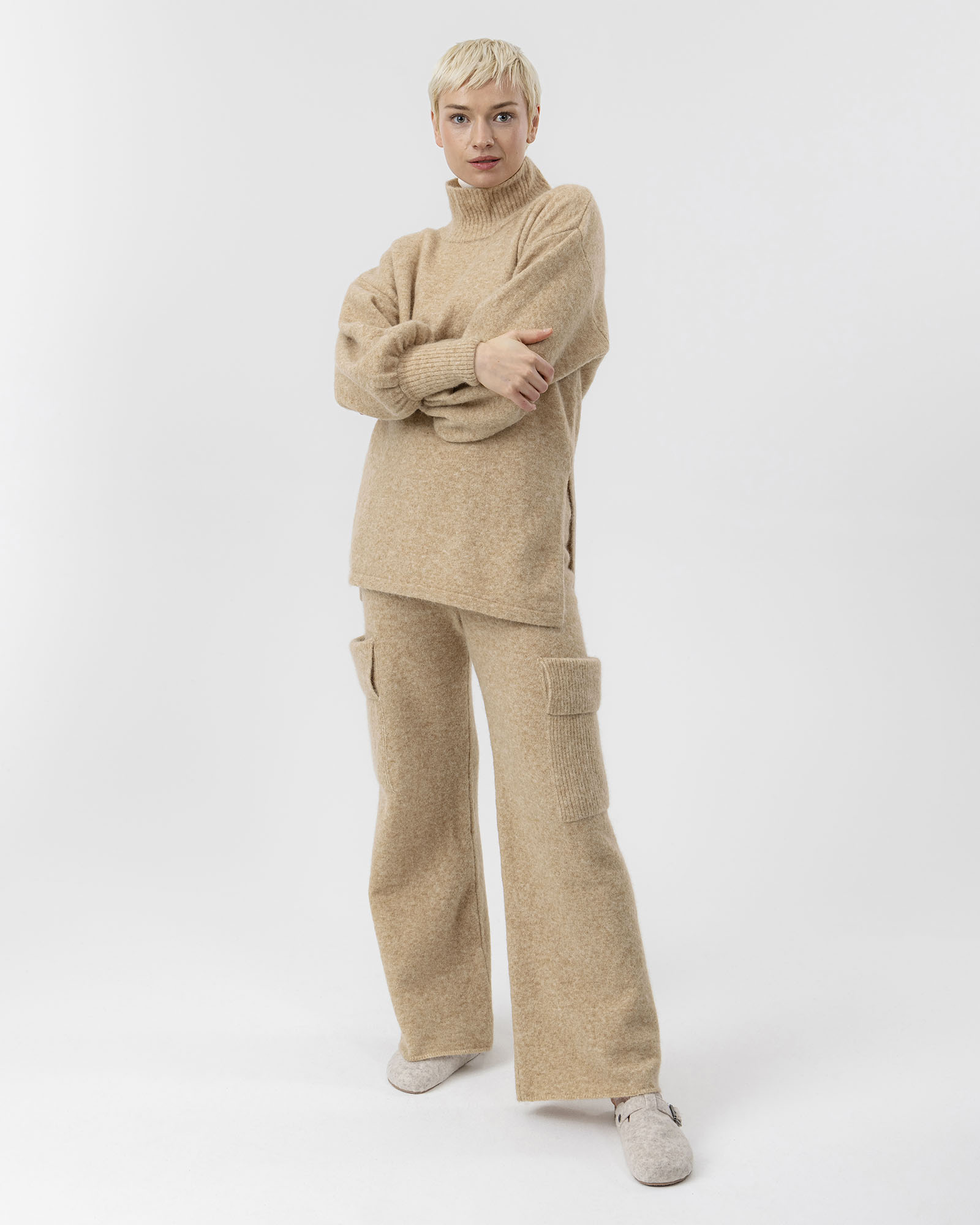 Knitted cargo pants in soft blend of extra fine merino wool and alpaca. Certified by RWS.