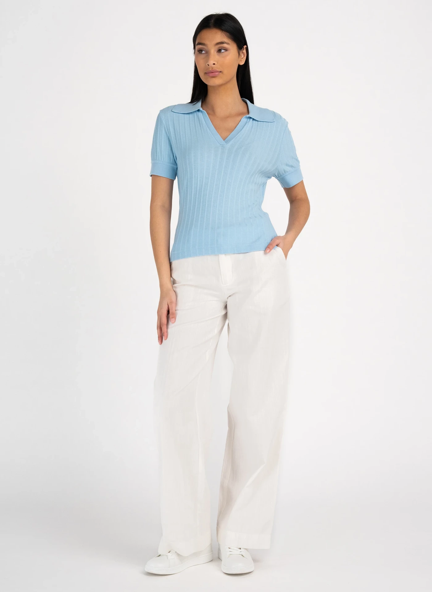 Garda Polo is a comfortable summer polo shirt with a wide collar and v-neck, a button placket without buttons, wide sleeve cuffs and hem with Pelle P logo. The shirt is made from a blend of organic cotton, modal and elastane.