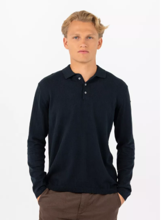 Men’s polo sweater made of a blend of organic cotton and cashmere, and features a regular fit. It has plain knit in both body and sleeves, with 1×1 ribbing at the collar and 2×2 ribbing at the cuffs and bottom. The placket includes Pelle P buttons. The sweater has fully fashioned armholes and a metal P logo badge at the left bottom, adding a stylish detail.