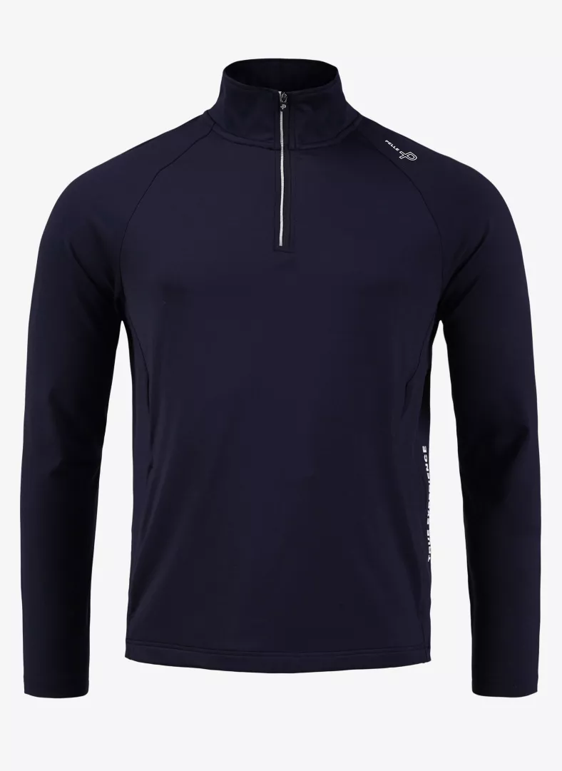 • Reversed half zip at center front with P-logo puller