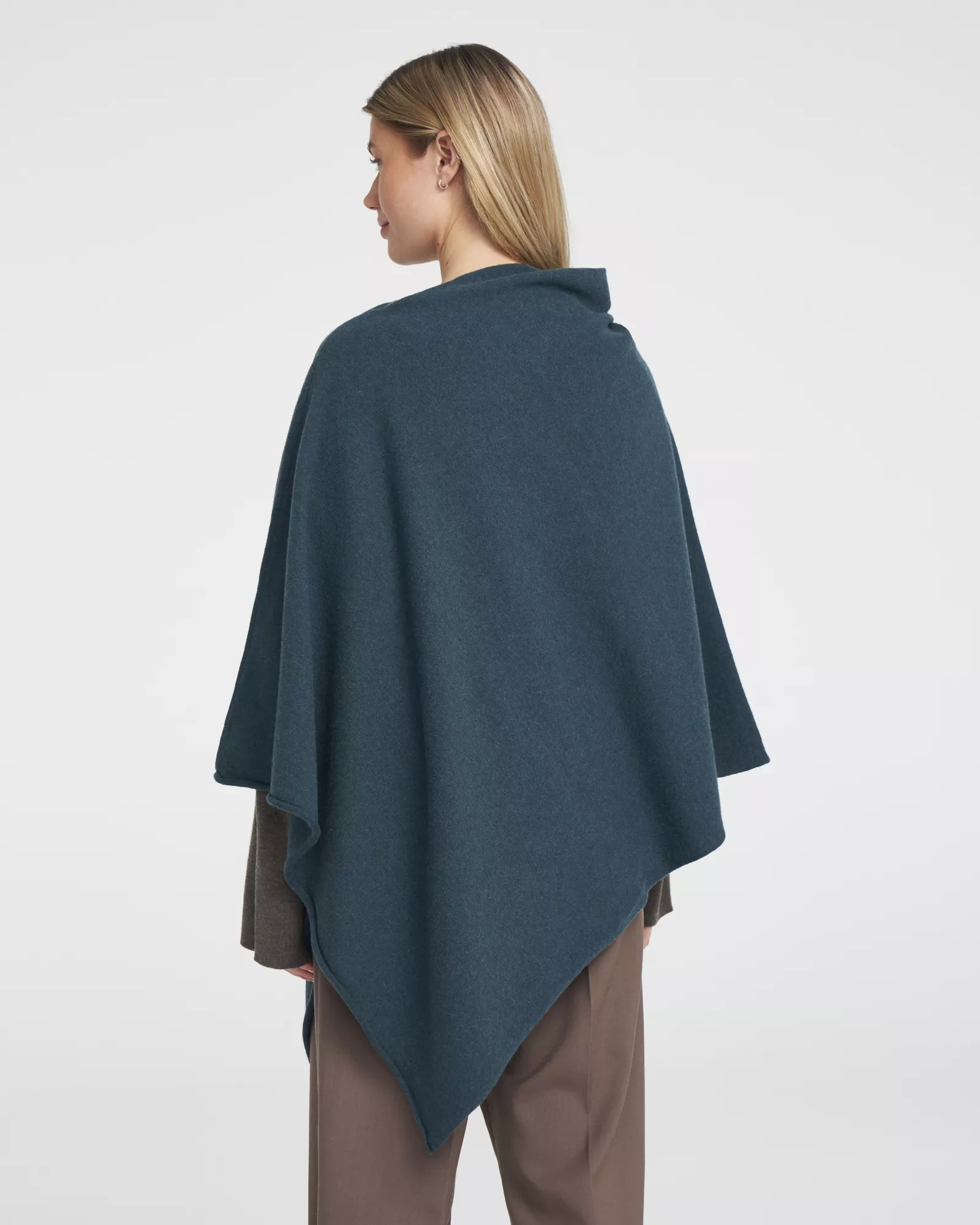 Knitted poncho in extra fine merino wool with raw endings. Can be worn and styled in different ways. The yarn is marked with Woolmark, which guarantees that the product is made of 100% pure wool that meets quality standards. Sustainably produced in Europe.