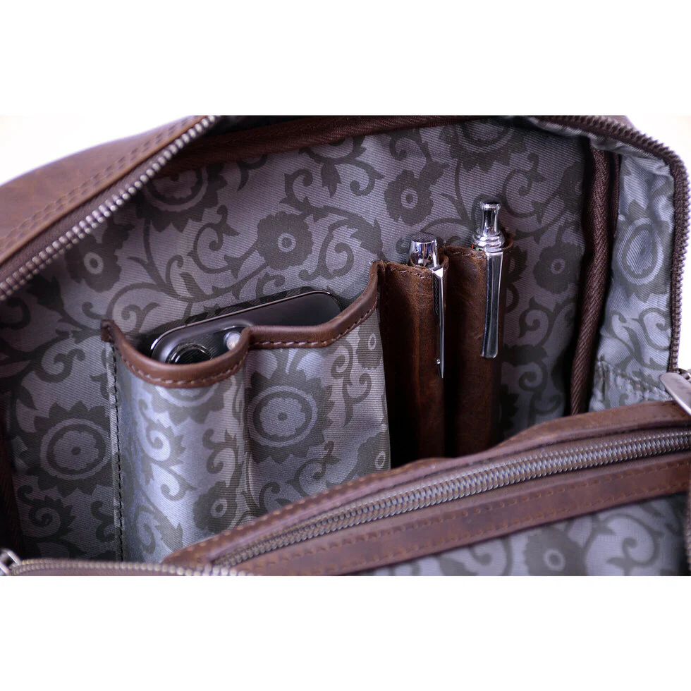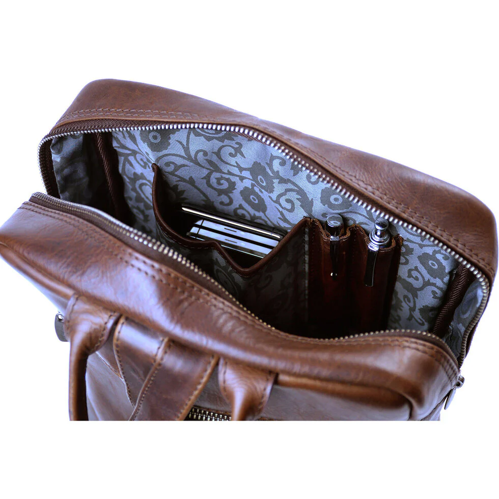Orca Bay Sonning Backback is a compact leather backpack with ample storage for everyday essentials that can be carried on your back, leaving you hands free ready for any activity. Crafted from oil tanned leather, the Sonning Backpack will age beautifully and add character in years to come, giving you a classic bag for your country and working outfits. Packed with useful features, the Sonning Backpack has a rear external zipped pocket, front zipped compartment and a zip closure on the main body keeping all contents secure. Adjustable leather straps can be used for a personalised fit and a useful top handle allows for quick carriage when needed and the subtle embossed Orca Bay logo gives the bag a stylish finish.