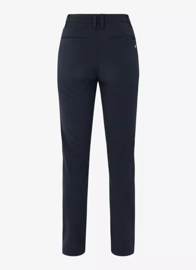Stylish performance pants made of a material with stretch and a soft brushed fleece inside. The pants are a regular fit and have five pockets: two back pockets – one with a push button and one with a silicone strip to keep, for example, your golf glove in place – two side pockets and one small coin pocket.