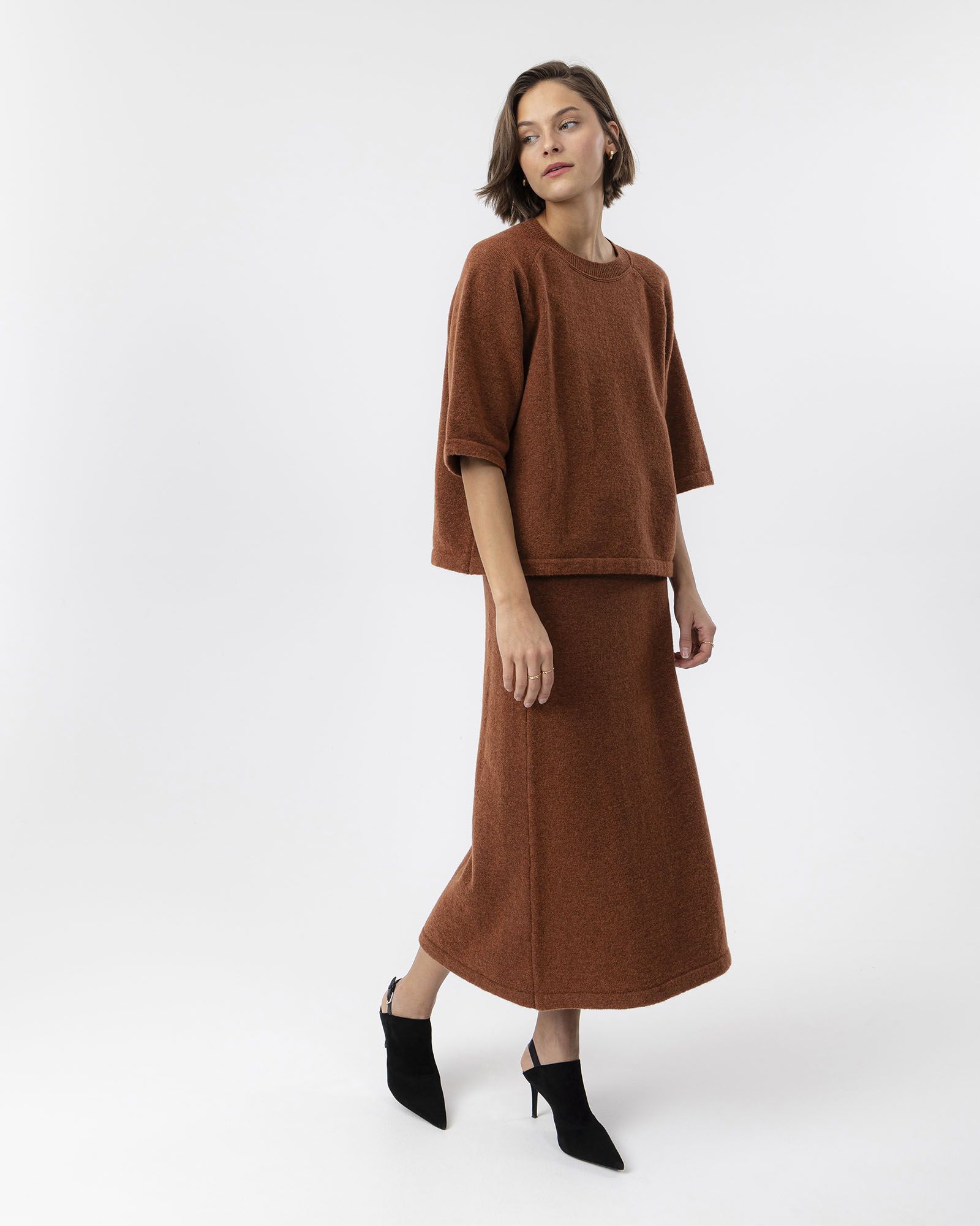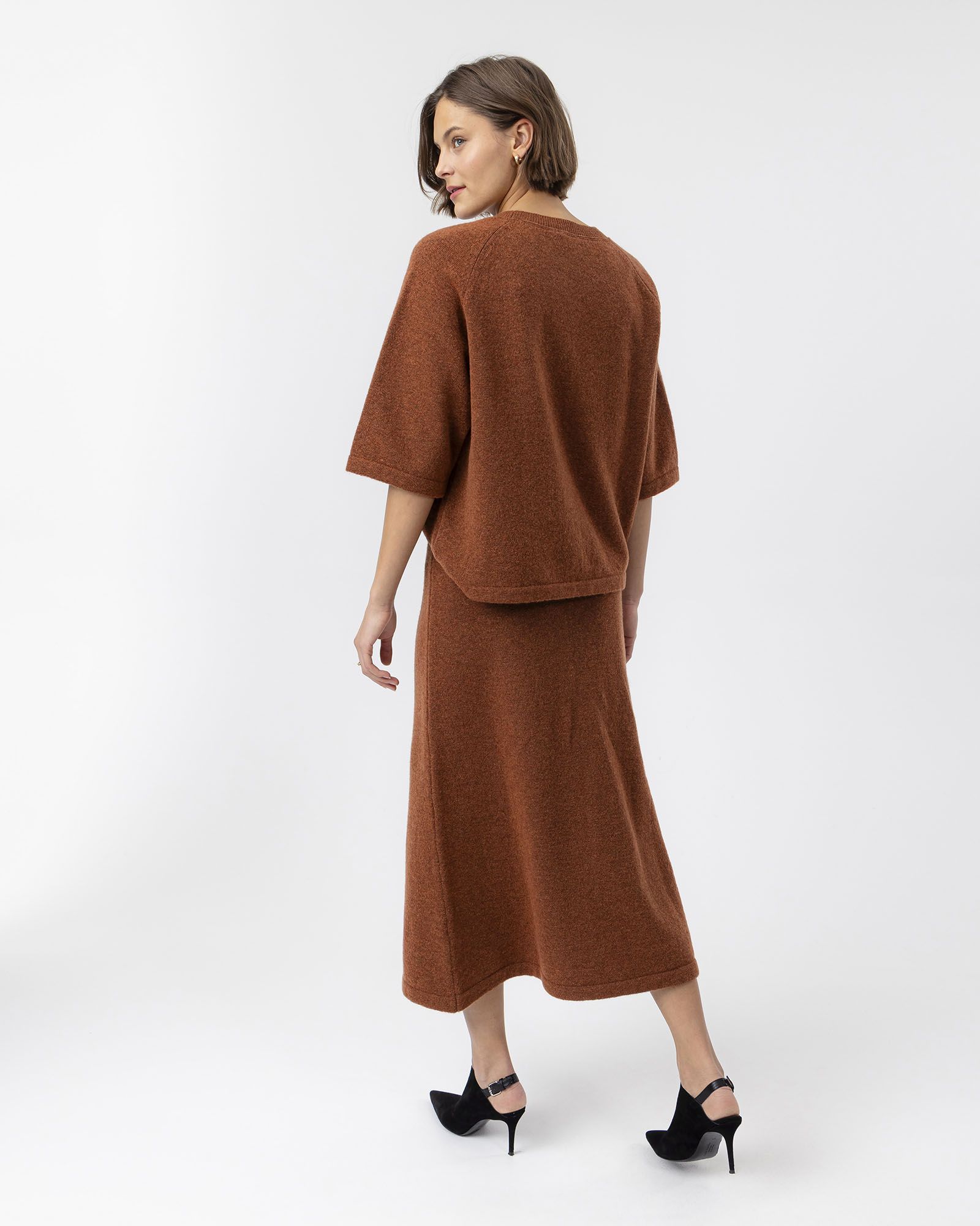Anita on ylellisestä merinovillasekoitteesta neulottu hame. Se pitää lämpimänä ja tuntuu miellyttävän pehmeältä ihoa vasten.