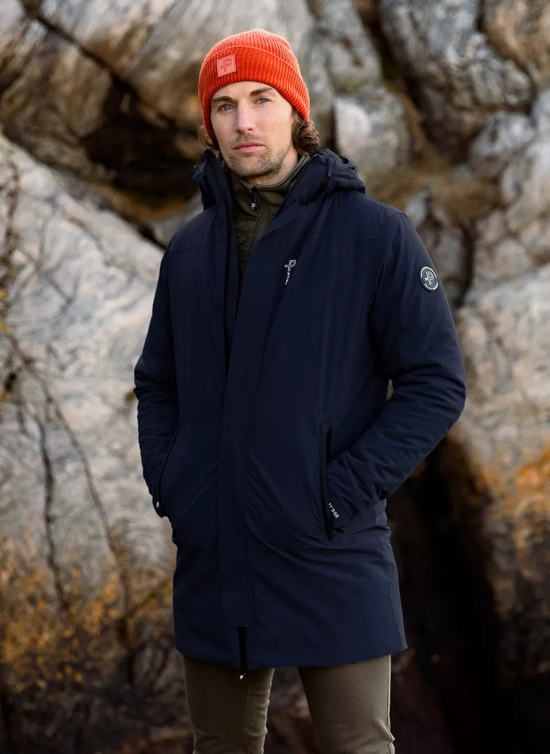 Täyte on kierrätettyä polyesteriä, ja edessä sekä taskuissa on YKK VISLON AquaGuard® -kaksisuuntaiset vettähylkivät vetoketjut. Irrotettava huppu, säädettävät hihansuut ja huppu liimatuilla säätimillä takaavat mukautettavan istuvuuden. Kohokuvioitu Pelle P -logo koristaa rintaa ja huppua, ja vasemmassa hihassa on kuminen merkki.