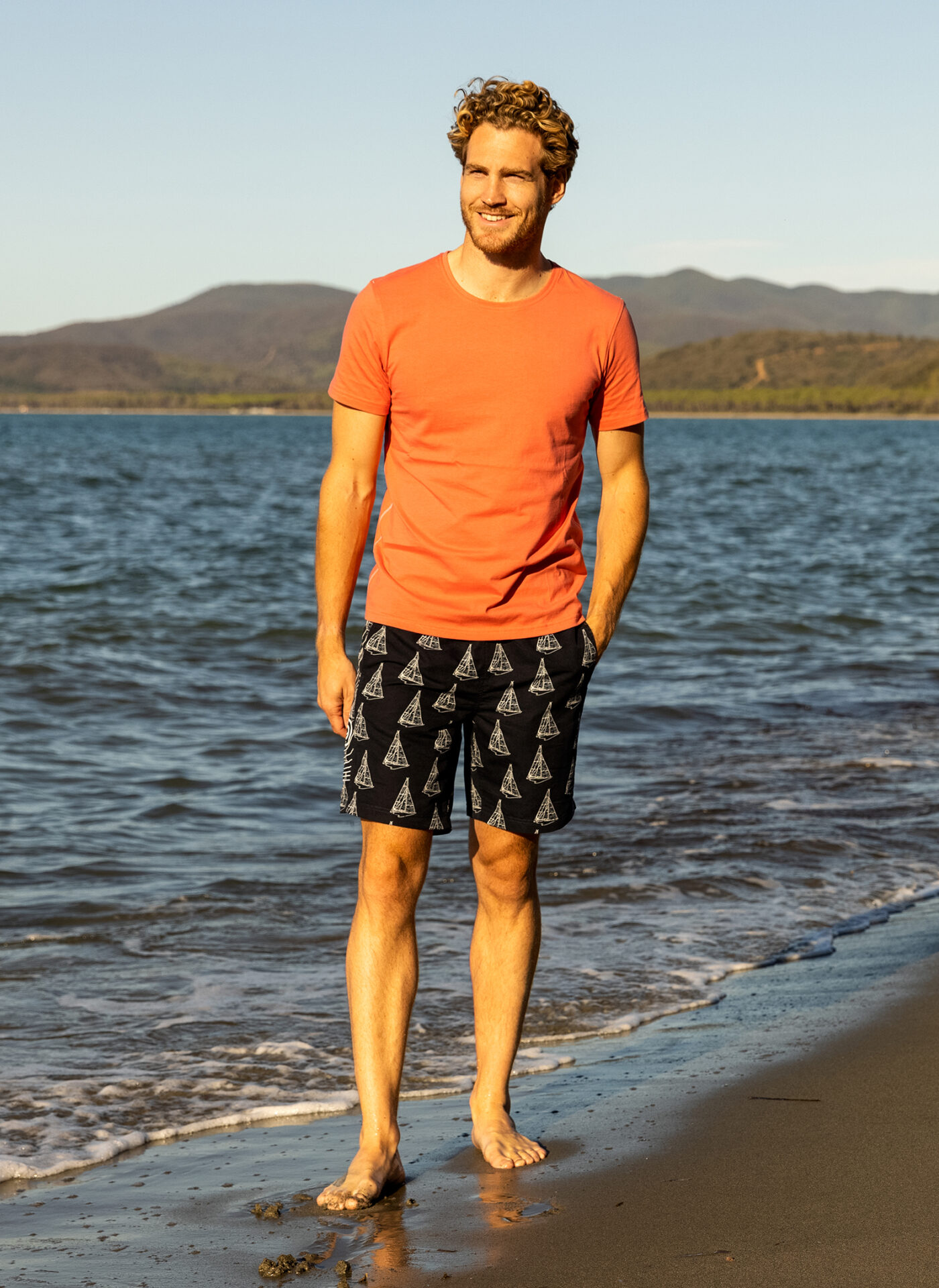 Nopeasti kuivuvasta kankaasta valmistetut miesten uimahousut. Kaksi etutaskua