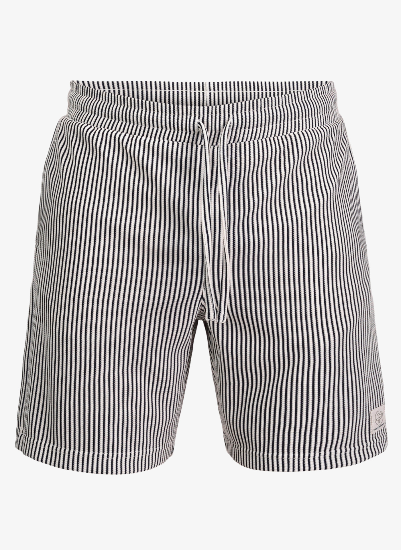 Mukavasta, tekstuuripintaisesta polyesteri-puuvillasekoitteesta valmistetuissa shortseissa on säädettävä kiristysnyöri vyötäröllä. Kaksi käytännöllistä etutaskua ja yksi takatasku tarjoavat tilaa pienille tavaroille. Hillityt raidat tuovat shortseihin persoonallista ilmettä.