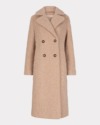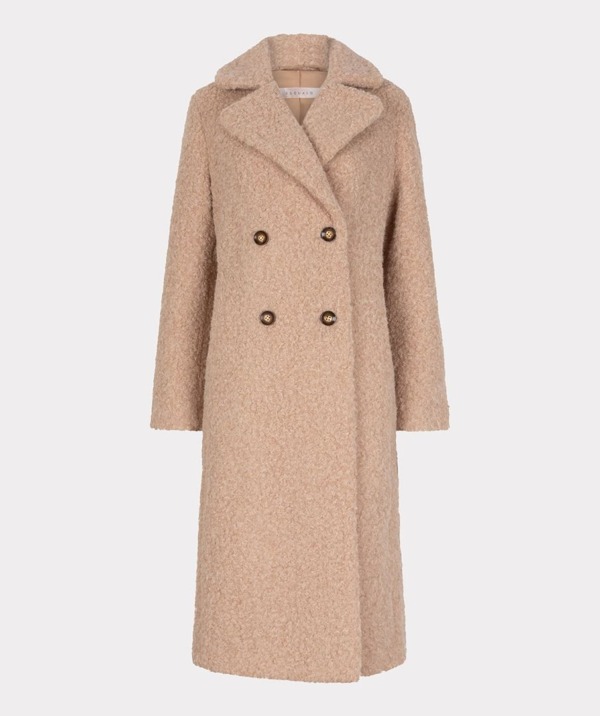 Tuo tyyliä asuusi tällä pitkällä, kaksirivisellä bouclé-kankaisella takilla. Takissa on sävytetyt napit, kauluskäänne ja sivutaskut.