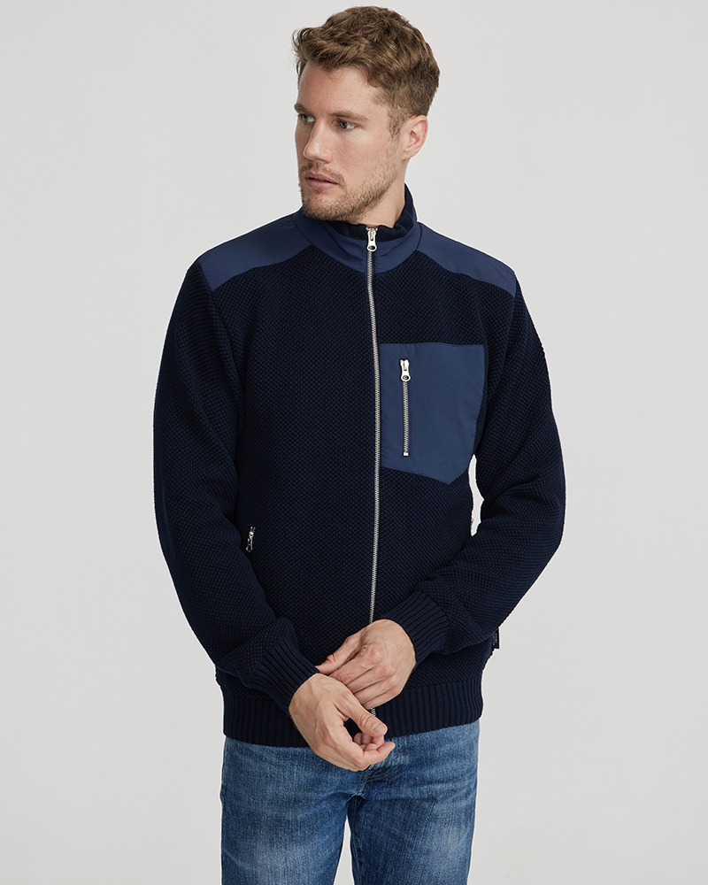 Neulepusero, 100 % luomupuuvillaa. Hengittävä tuulenpitävä vuori, vetoketjulliset etutaskut. Vettä hylkivät somisteet olkapäillä.