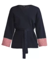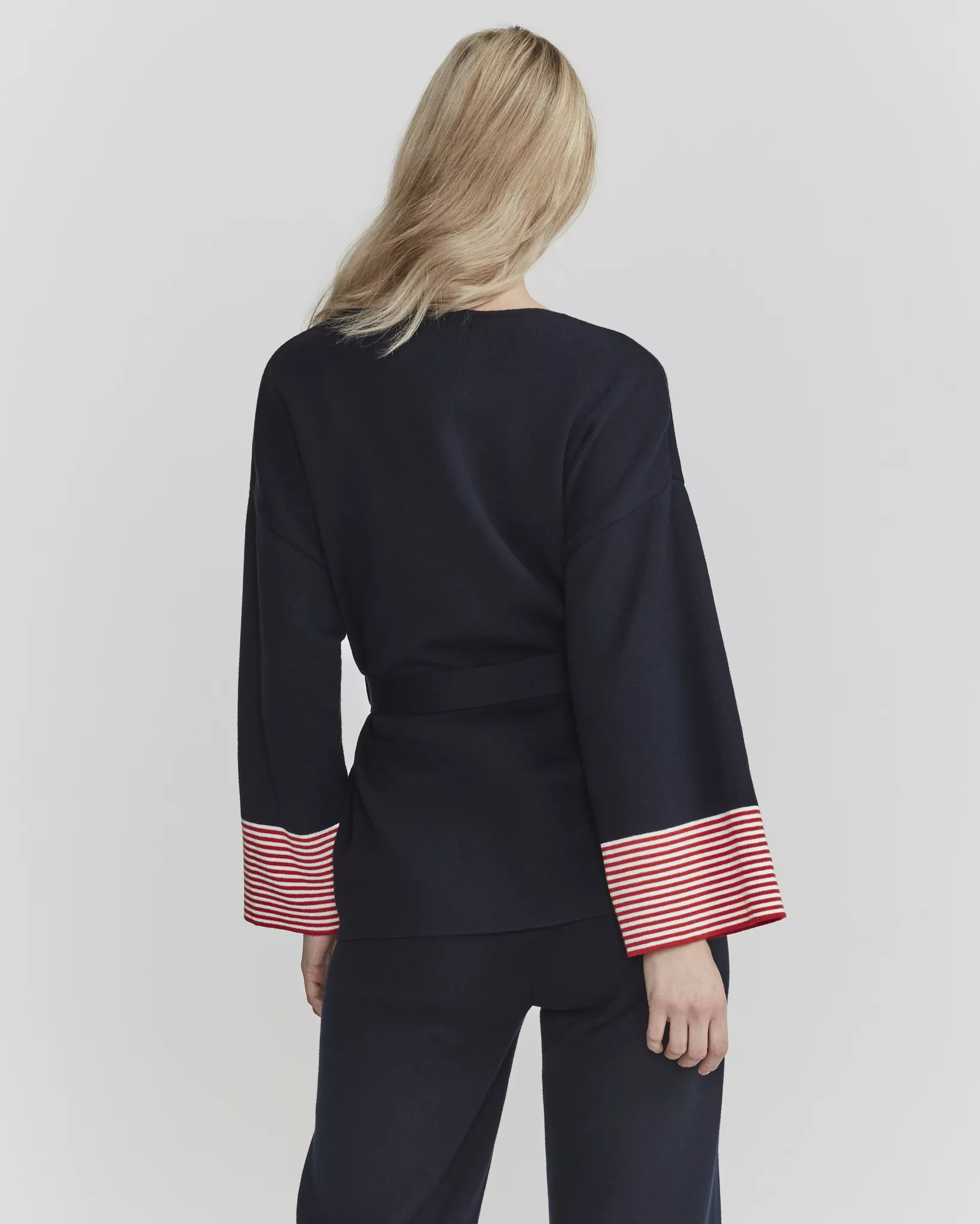 Puuvillasta neulottu kimonomallinen vyöllinen takki. Piilotetut sivutaskut ja leveät hihat kauniin siluetin luomiseksi.