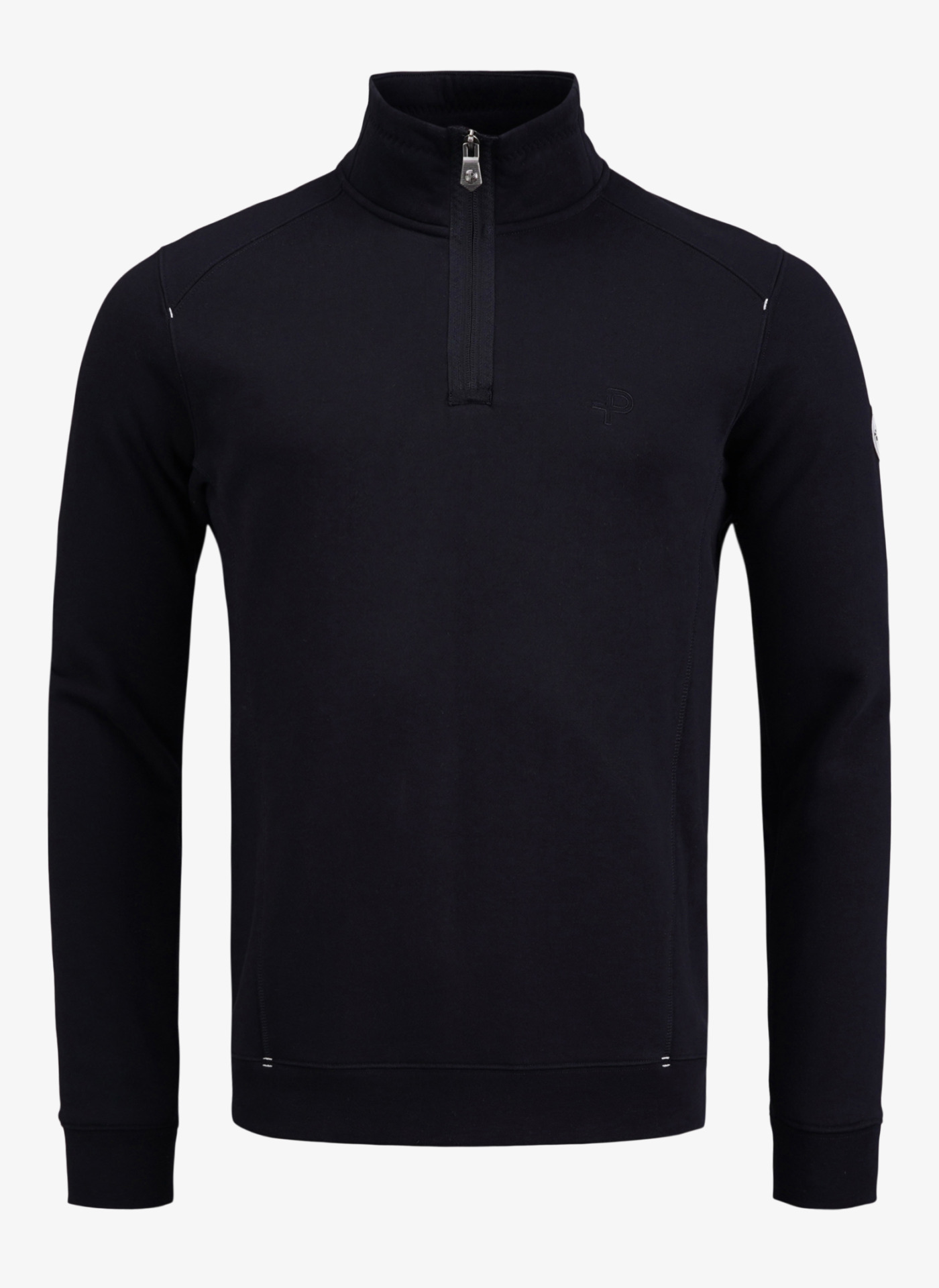 Tämä miesten collegepaita on valmistettu puuvillan ja polyesterin sekoitteesta ja siinä on normaali istuvuus. Sisäpinta on harjattu pehmeäksi, jotta se tuntuisi mukavalta päällä. Hihansuut ja helma on viimeistelty 1×1-joustinneuloksella. Kauluksessa on puolivetoketju, jossa on kolmiaskelinen siksak-tikkaus ja P-logolla varustettu vetoketjun vedin. Tyylikkyyttä tuovat flatlock-saumat, P-logo kirjailtuna rinnassa ja niskan takana puolikuussa, sekä P-logomerkki vasemmassa hihassa.