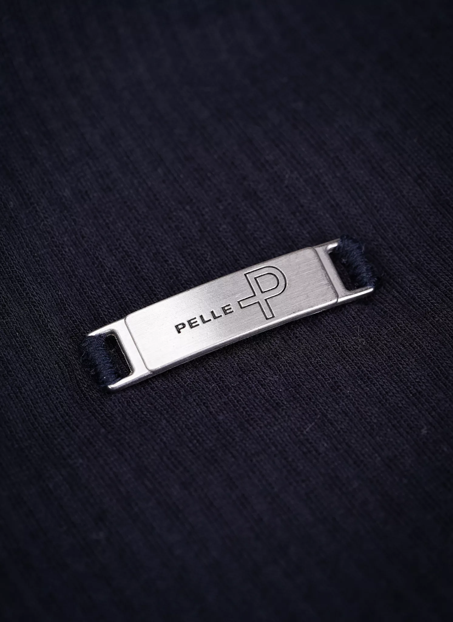 Vasemmassa hihassa Pelle P metallinen logomerkki