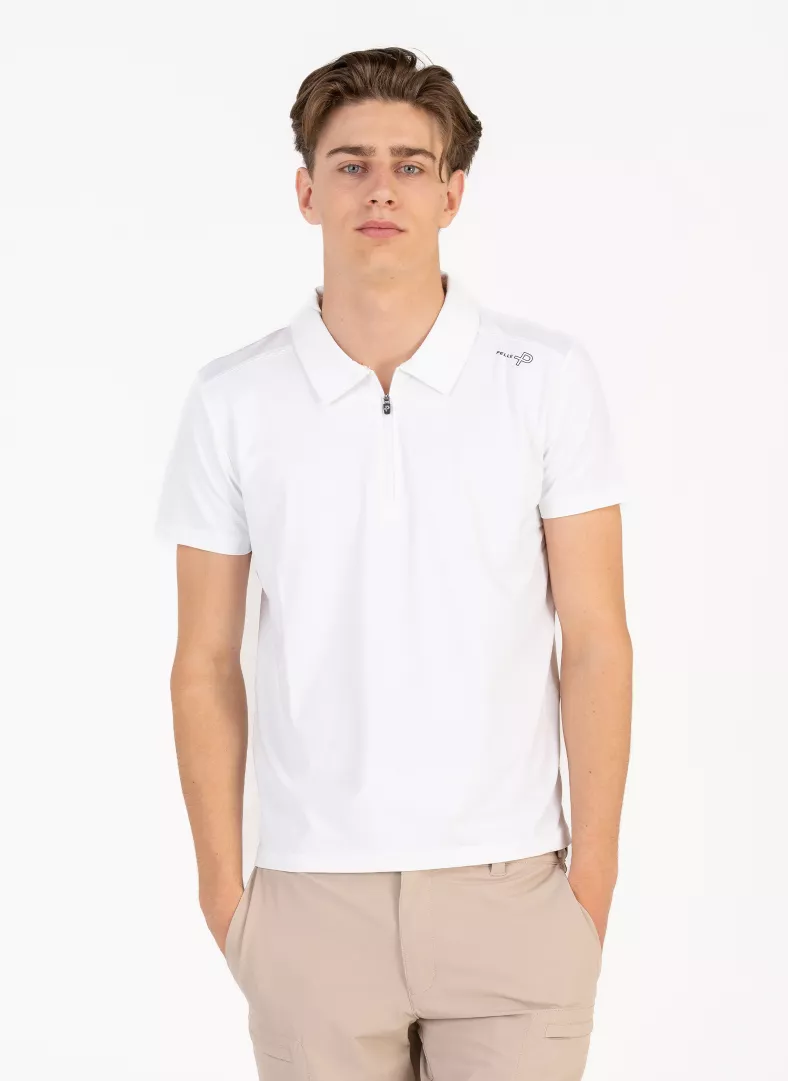 Tyylikäs ja moderni pikeepaita, joka yhdistää muodon ja toiminnallisuuden ja tukee sinua joka hetki, kun tavoittelet parasta suoritustasi. Kevyt ja joustava materiaali liikkuu luonnollisesti mukanasi — olipa kyseessä golfswingi tai nopea purjeen nosto. Lämpimissä olosuhteissa harjoitellessa kosteutta siirtävä kangas tarjoaa pehmeän ja viileän tunteen, ja UV50+ suoja pitää sinut turvassa voimakkaassa auringossa. Normaali istuvuus ja käytännöllinen vetoketjullinen kaulus tekevät paidasta monikäyttöisen. Pelle P:n tunnusomaisiin yksityiskohtiin kuuluvat logopainatus selän keskellä ja etuolkapäällä sekä True Experience ‑painatus, joka kulkee elegantisti sivusaumaa pitkin.
