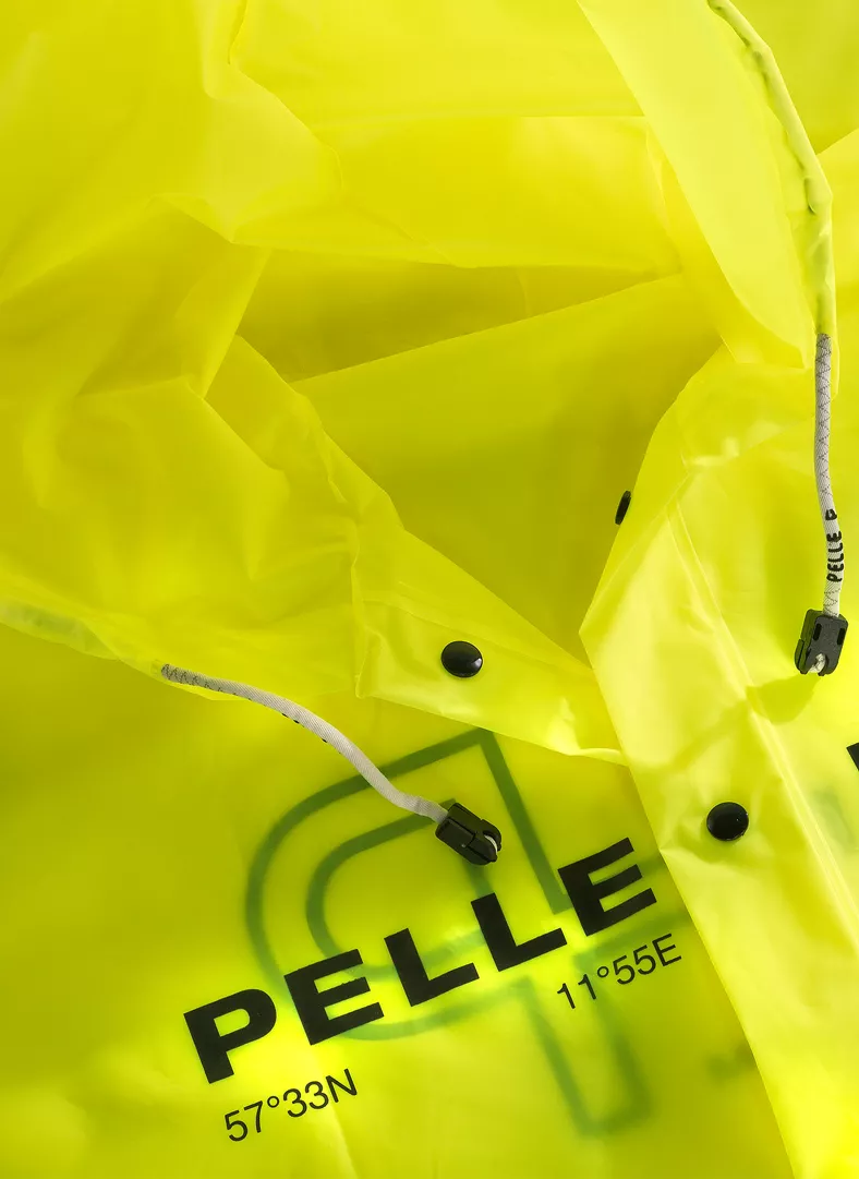 Keltainen sadetakki.