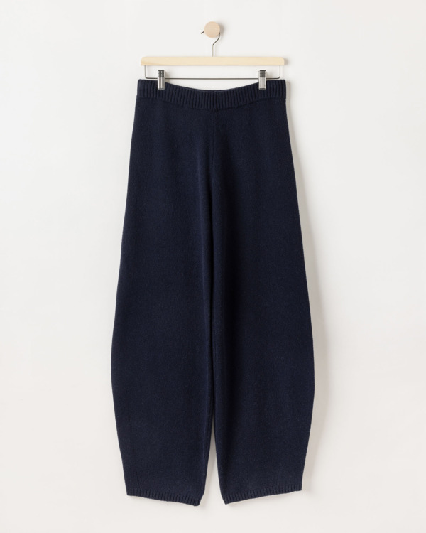 Mukavat villasekoitteiset neulehousut joustavalla vyötäröllä. Väljä malli, takana päälle ommellut taskut ja täyspitkät, kaarevasti leikatut lahkeet. Lahkeensuissa joustinneulos. Yhdistä neuleeseen ja luo tyylikäs kokonaisuus. Valmistettu vastuullisesti Euroopassa.