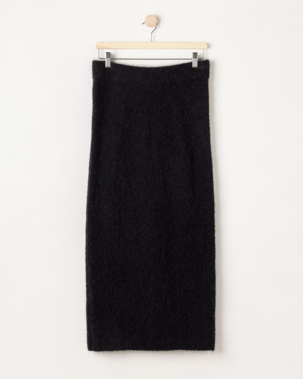 Pehmeä ja pörröinen kid mohair -sekoitteesta valmistettu sileäneuloksinen hame. Joustava vyötärö, suora malli ja nilkkapituus. Yhdistä Tindra-toppiin saadaksesi tyylikkään ja harmonisen kokonaisuuden. Lanka on sertifioitu Responsible Mohair Standardin (RMS) ja Global Recycled Standardin (GRS) mukaisesti. Kestävästi valmistettu Euroopassa.