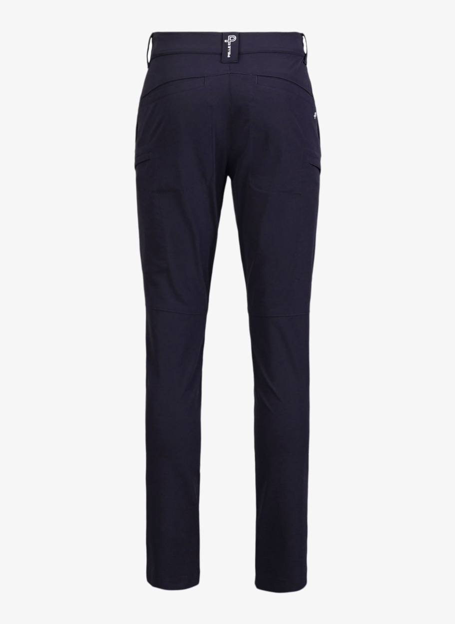 Püksid on eest lukuga ja reguleeritava vöögakohaga, külgedel on praktilised taskud ning lisaks kaks peidetud lukuga sääretaskut. Taga veel kaks taskut, mille sees on silikoon, et esemed püsiks kindlalt paigal. Ideaalsed golfiväljakule.