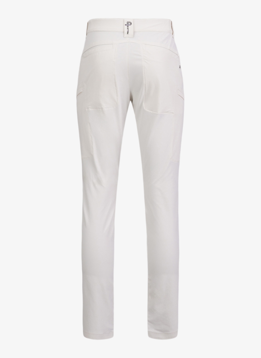 Püksid on eest lukuga ja reguleeritava vöögakohaga, külgedel on praktilised taskud ning lisaks kaks peidetud lukuga sääretaskut. Taga veel kaks taskut, mille sees on silikoon, et esemed püsiks kindlalt paigal. Ideaalsed golfiväljakule.