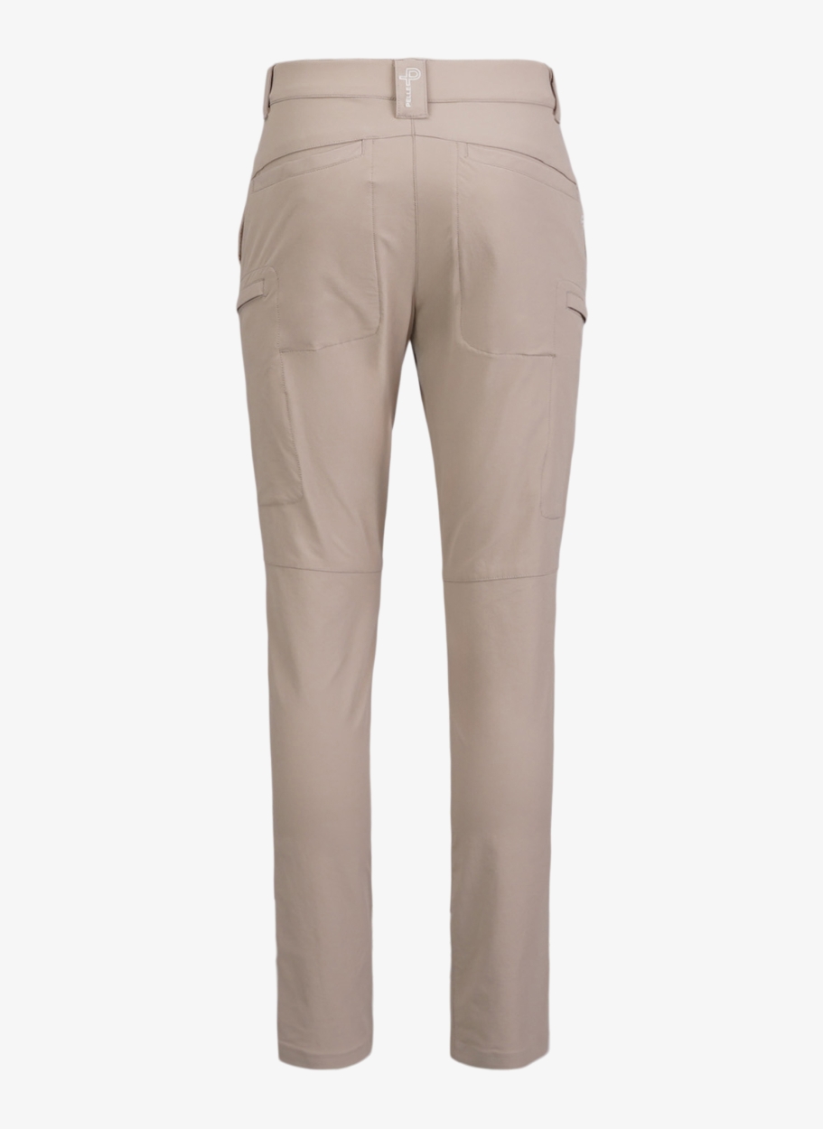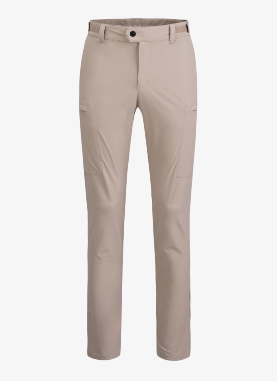 Püksid on eest lukuga ja reguleeritava vöögakohaga, külgedel on praktilised taskud ning lisaks kaks peidetud lukuga sääretaskut. Taga veel kaks taskut, mille sees on silikoon, et esemed püsiks kindlalt paigal. Ideaalsed golfiväljakule.