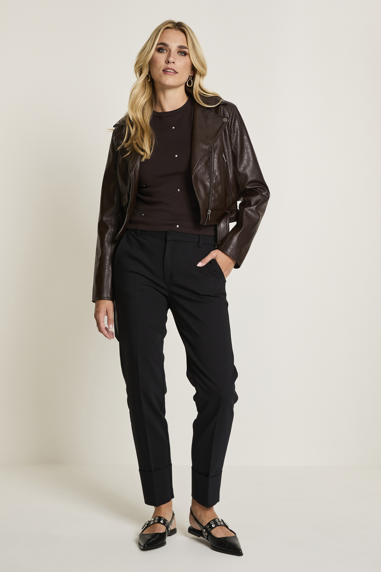 Cindy Chino City Satin on elegantne ja ajatu pükste mudel, millel on kõrge vöökoht ja sirge säärelõige. Kerge läikega satiinkangas lisab viimistletud ilmet, samas kui mugav venivus tagab hea istuvuse ja liikumisvabaduse.