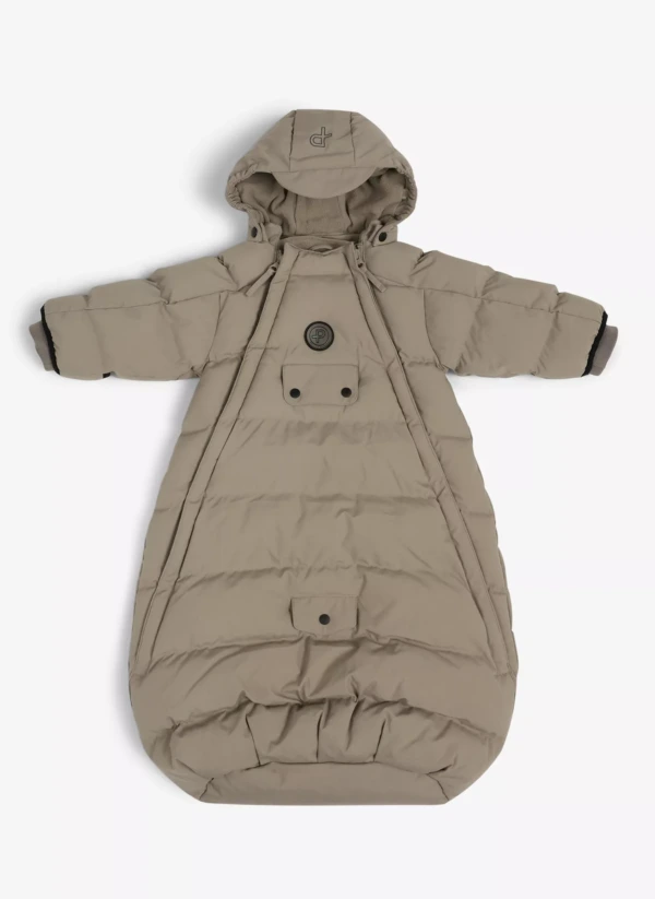 Beebi magamiskott on valmistatud venivast, veekindlast ja tuulekindlast kangast, pakkudes kaitset ja mugavust igas olukorras. Polsterdus on tehtud taaskasutatud polüestrist, mis pärineb PET-pudelitest. Praktilised detailid, nagu eemaldatav kapuuts ja turvavöö avad, muudavad selle ideaalseks valikuks vankrisse või turvahälli.