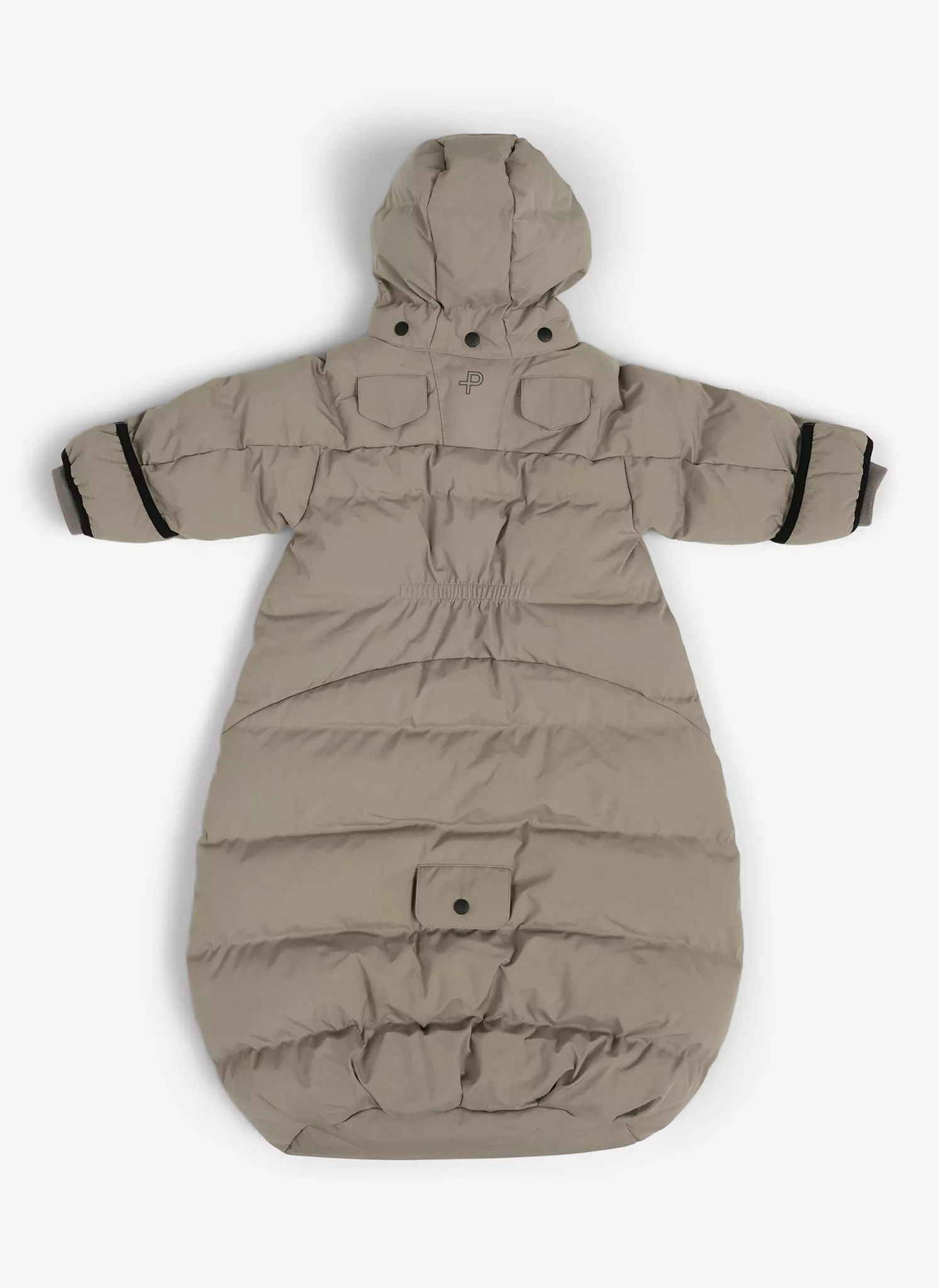Beebi magamiskott on valmistatud venivast, veekindlast ja tuulekindlast kangast, pakkudes kaitset ja mugavust igas olukorras. Polsterdus on tehtud taaskasutatud polüestrist, mis pärineb PET-pudelitest. Praktilised detailid, nagu eemaldatav kapuuts ja turvavöö avad, muudavad selle ideaalseks valikuks vankrisse või turvahälli.