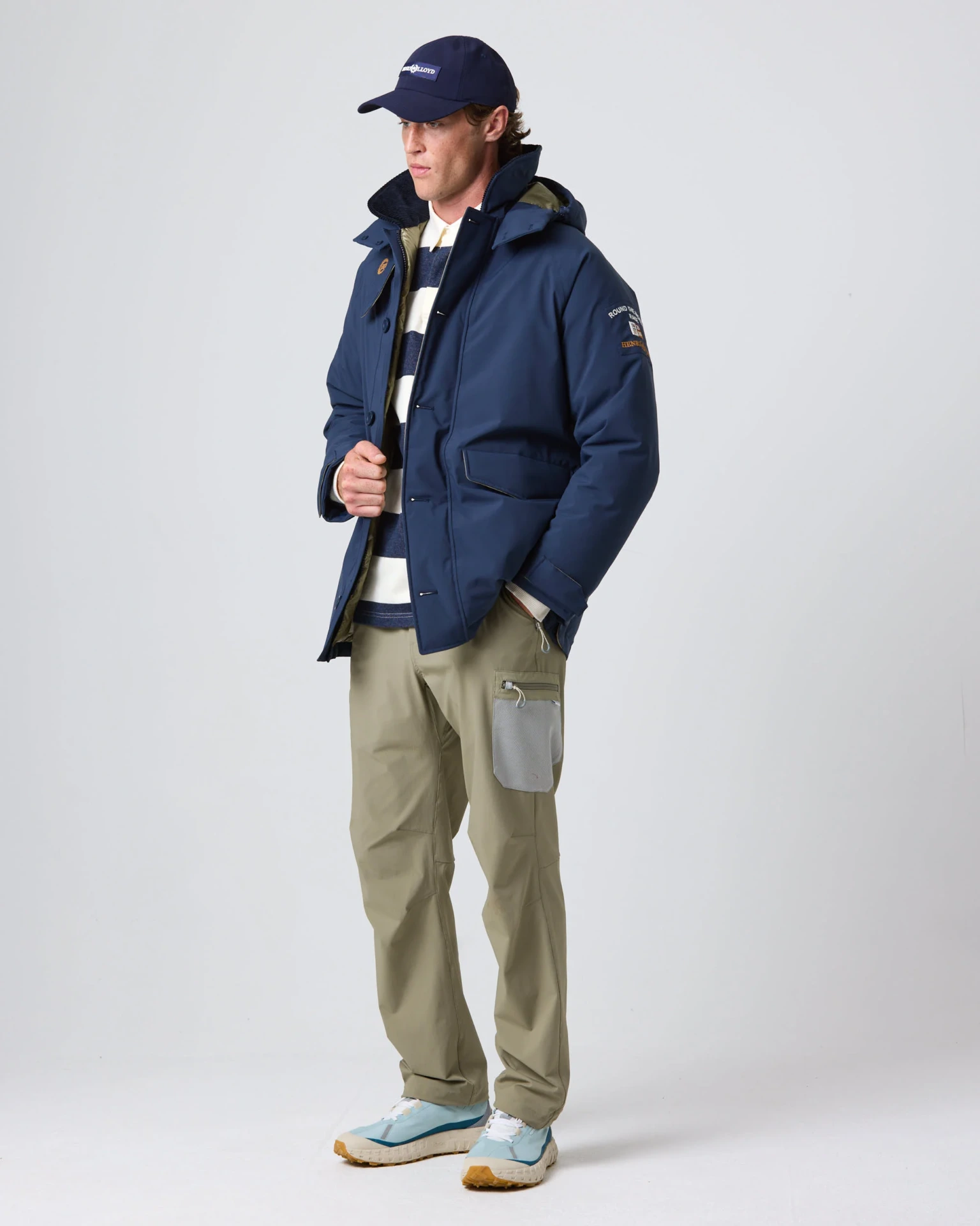 Henri-Lloyd Consort RWR jope – klassika, mis hoiab sind soojas ja kuivas. See jope ühendab ajatu disaini ja tänapäevased materjalid. Soojenduseks on kasutatud 100% taaskasutatud plastpudelitest valmistatud REPREVE® isolatsioon, mis on keskkonnasõbralik ja tõhus. Jope on veekindel, hingav ja täielikult teibitud õmblustega – loodud vastu pidama muutlikus ilmas. Stiili lisavad tikitud RWR detail varrukal, pehme sametkrae ja eemaldatav kapuuts. Mugavust ja praktilisust pakuvad reguleeritavad varrukaotsad, mitmed taskud ning kvaliteetsed YKK tõmblukud ja logonööbid.