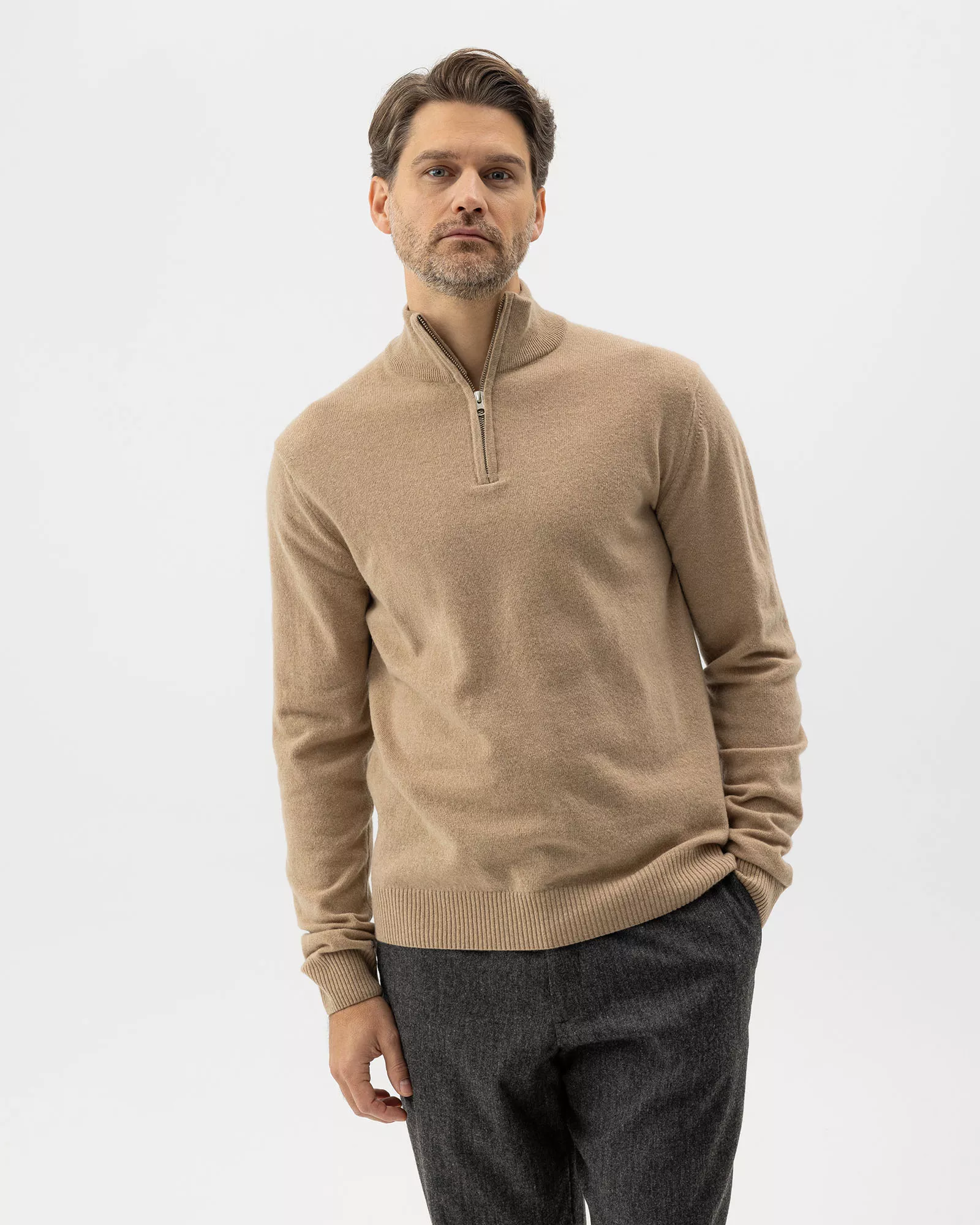 Kootud sviiter pehmest villa ja taaskasutatud kašmiiri segust. Soonikkoes krae lukuga. Soonikkoes varrukaotsad ja klassikaline (regular fit) lõige. Ajatu ja klassikaline sviiter pehmest kvaliteetmaterjalist. Lõng on GRS‑sertifikaadiga, mis tagab kõrgema taaskasutatud materjali miinimumprotsendi, jälgitavuse ning täiendavad sotsiaalsed ja keskkonnanõuded. Jätkusuutlikult toodetud Euroopas.