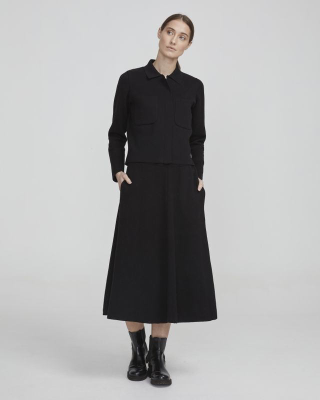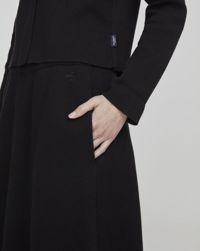 Puuvillane kootud seelik. Mugavalt veniv vöökoht, kaks taskut. Alt laienev mudel.