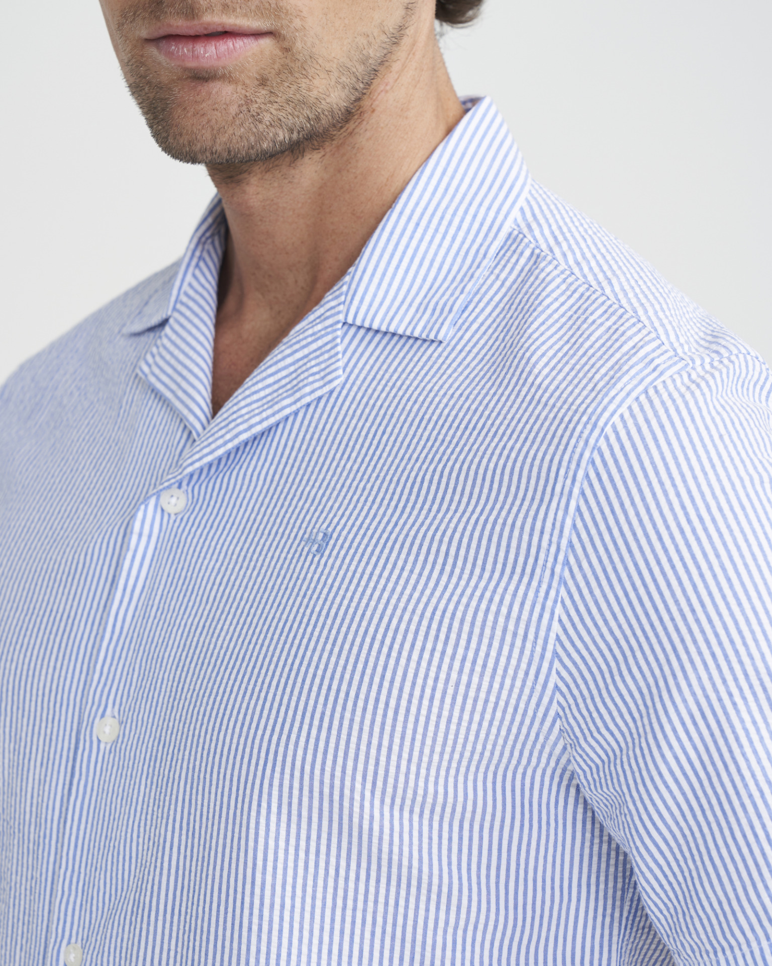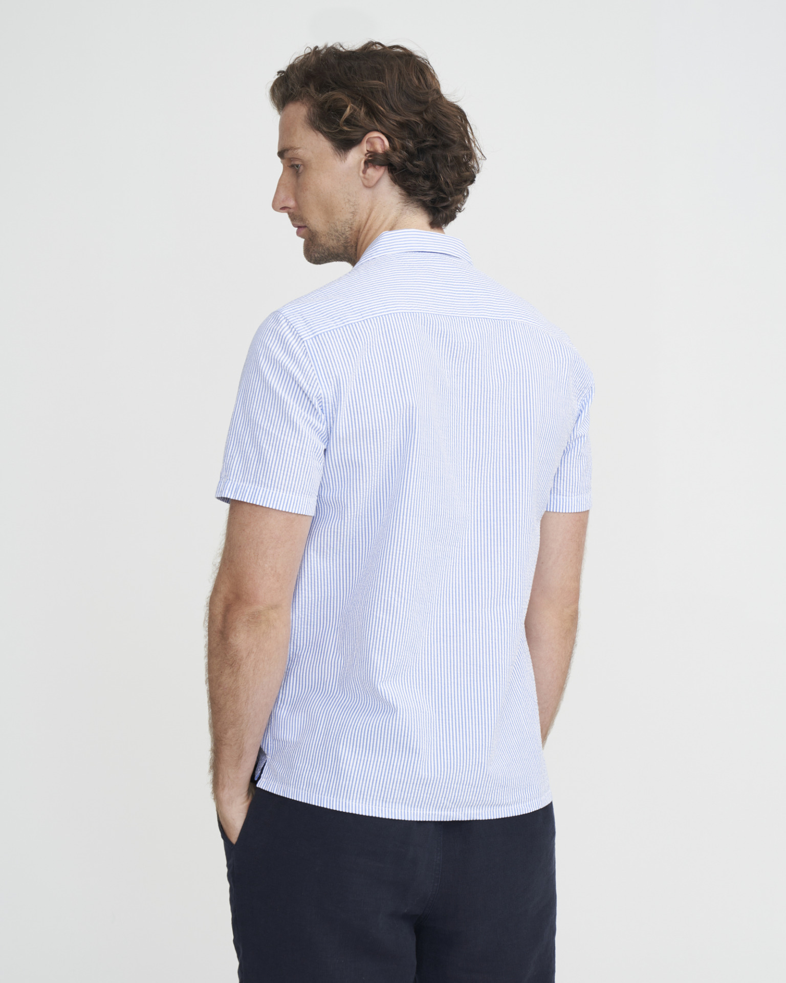Lina- ja puuvillasegune lühikeste varrukatega meeste särk. Sirge lõige.