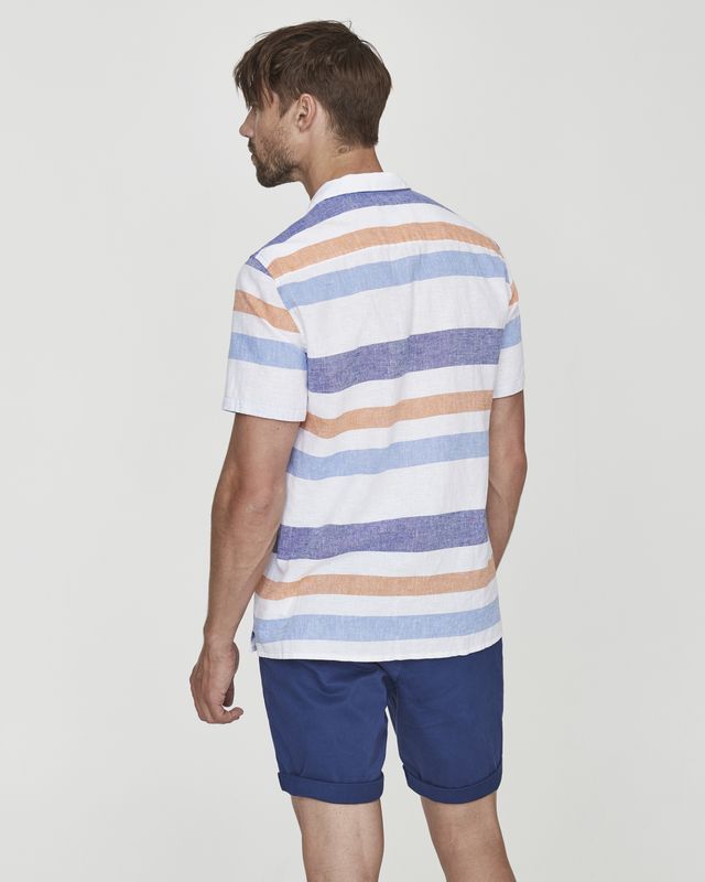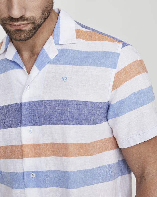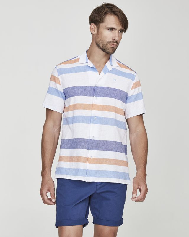 Lina- ja puuvillasegune lühikeste varrukatega meeste särk. Sirge lõige.