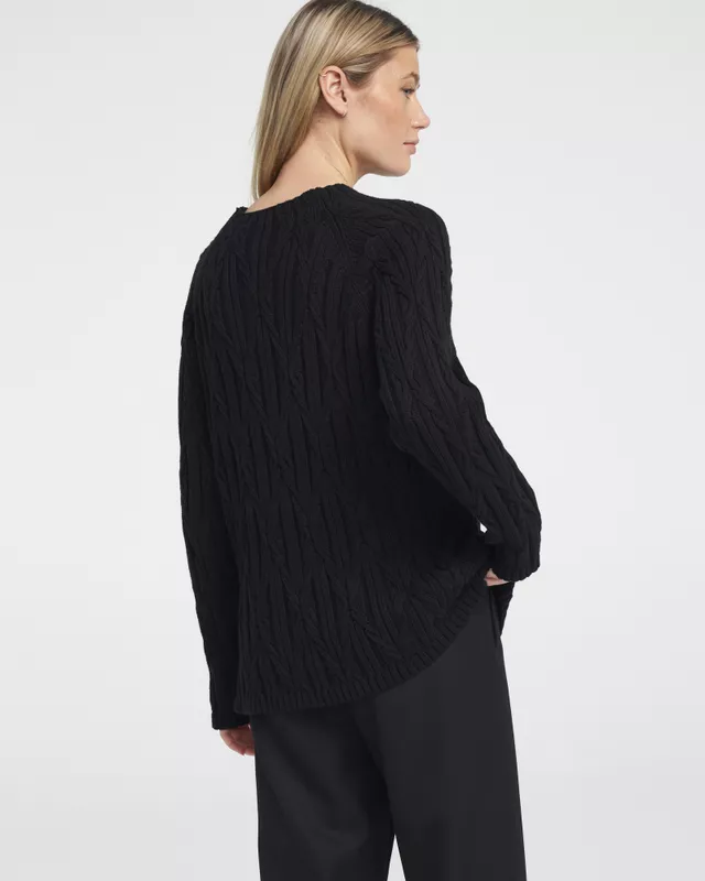 Palmikutega, orgaanilisest puuvillast naiste kampsun. Kampsunil on raglaanvarrukas ja avarad varrukaotsad. Soovitame võtta number väiksem suurus. Sirge lõige.