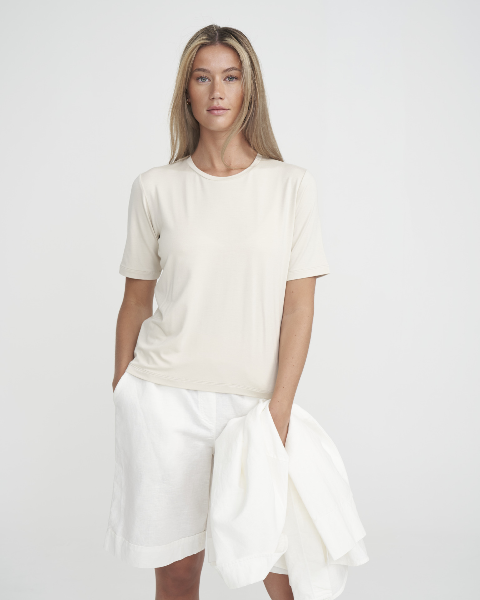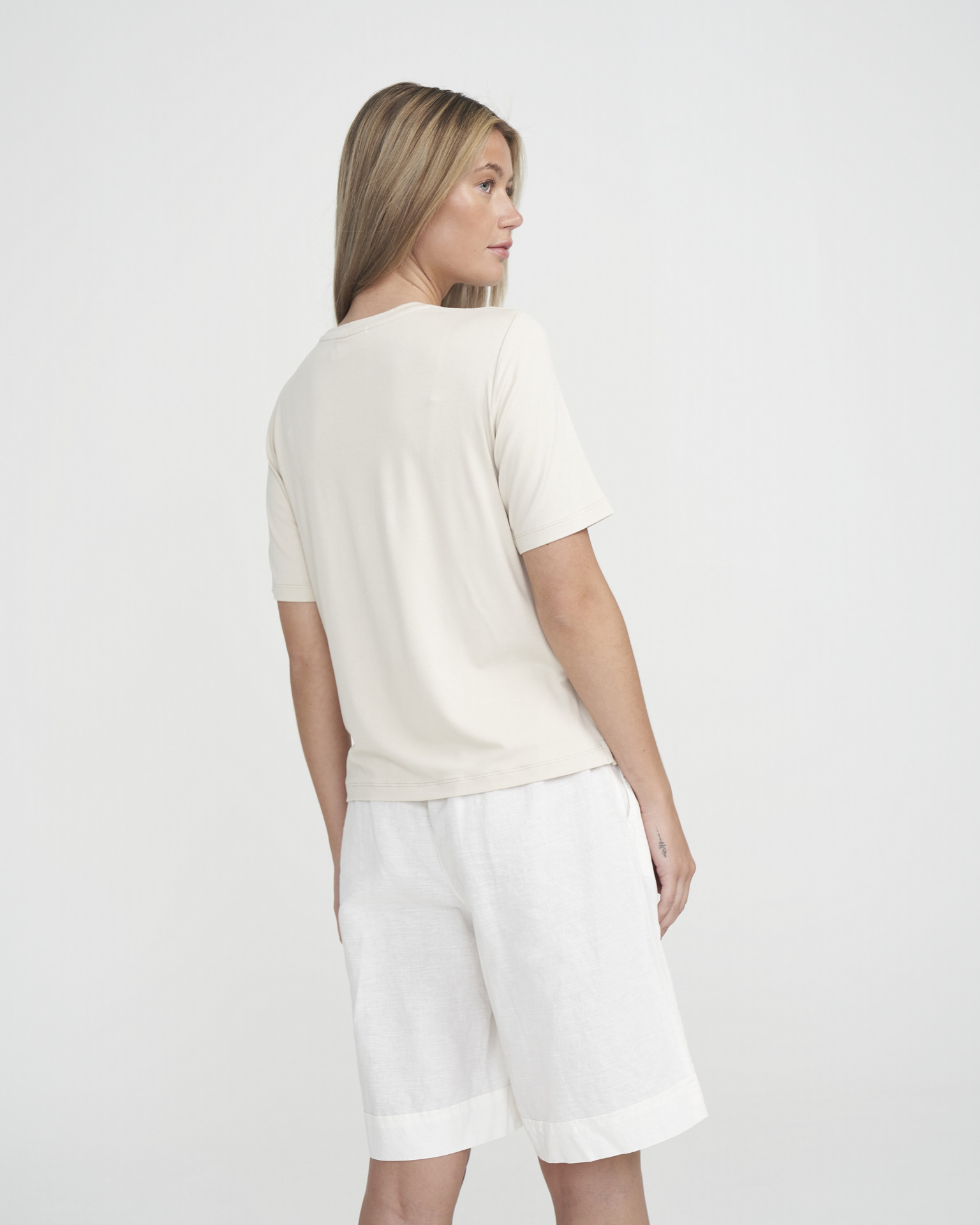 Klassikaline lühikeste varrukatega mugav t-särk, mille allääres on lõhikud mõlemal küljel.