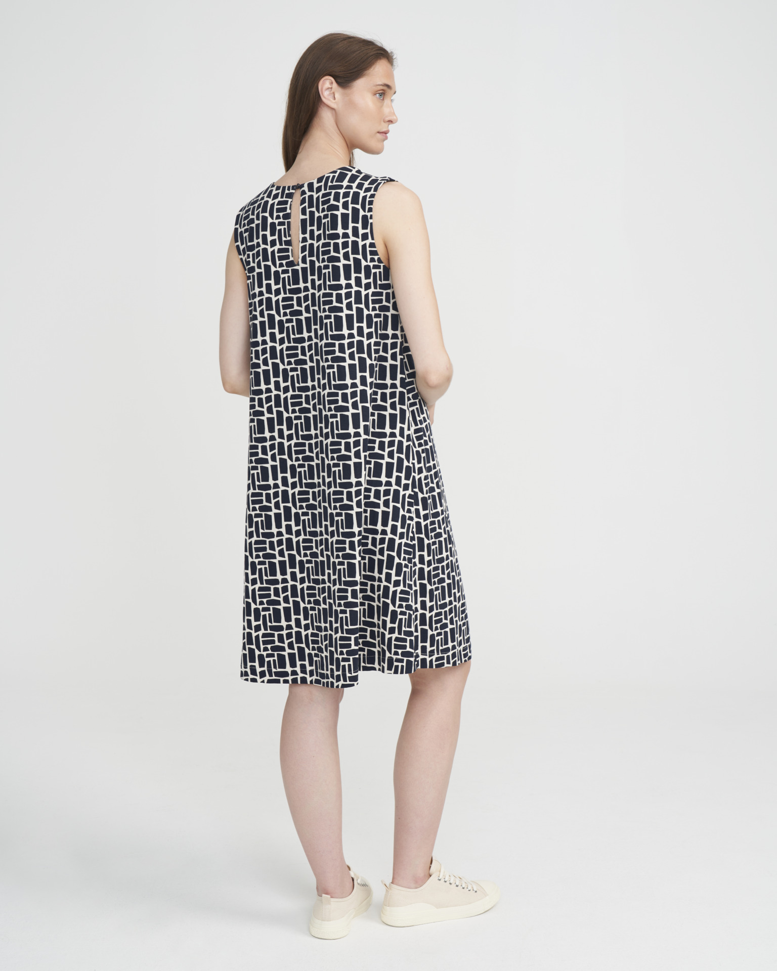 Pehme varrukateta kleit. Väikesed voldid ees ja kanga raskem tunne annavad rõivale mõnusa langevuse. Tavaline istuvus.