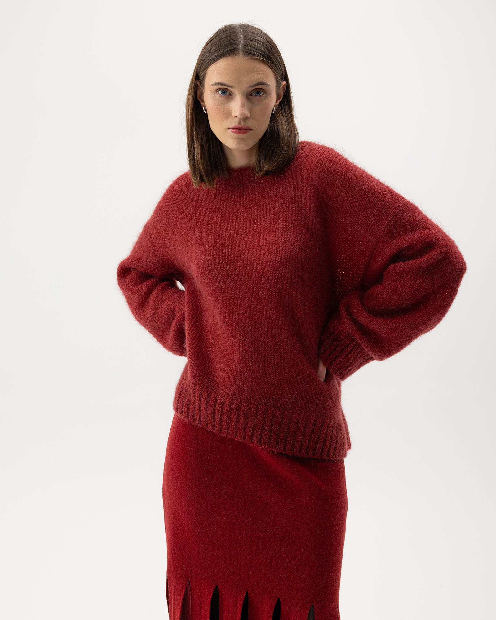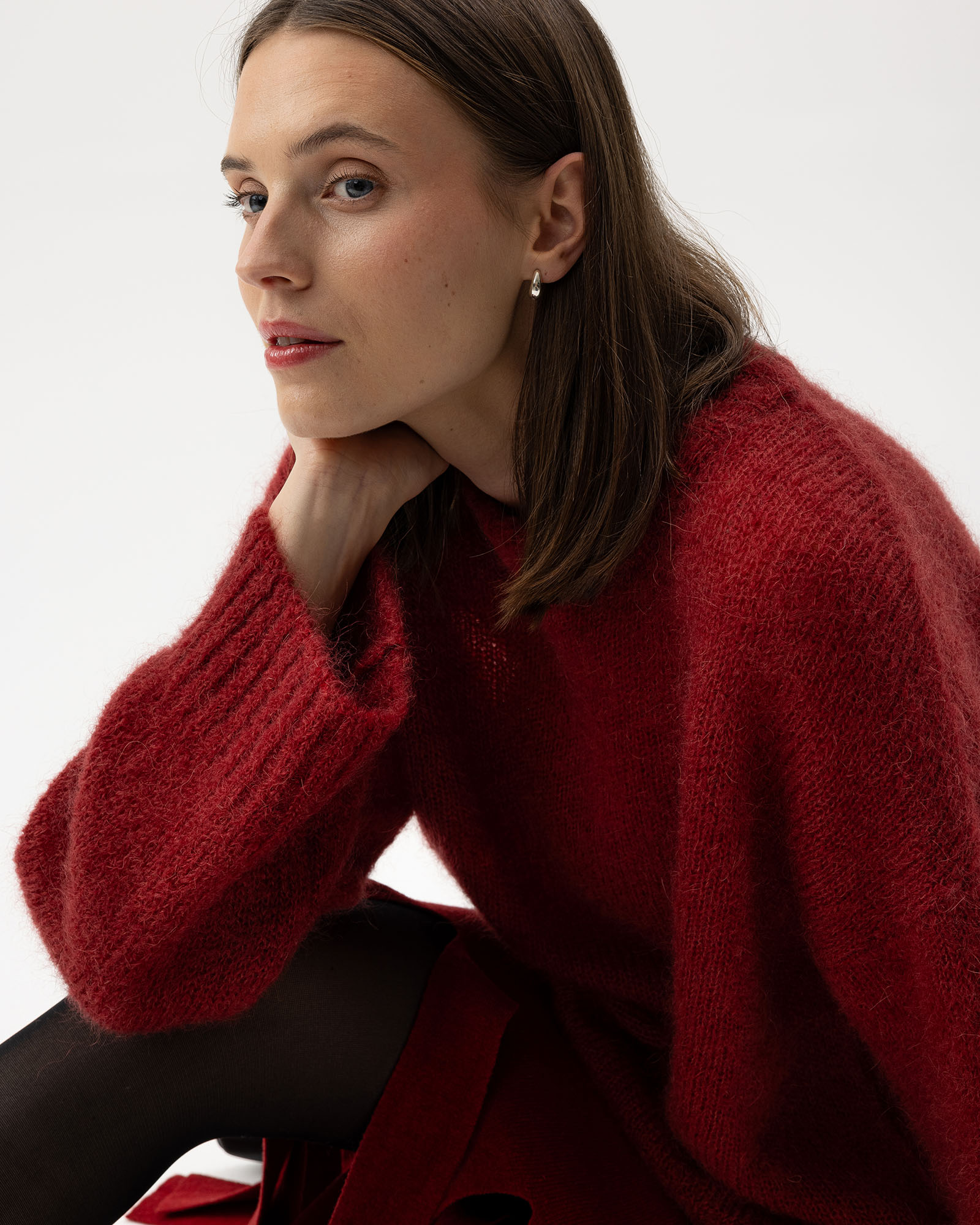 Joline sviiter on valmistatud pehmest ja õhulisest mohäärisegust. Ümara kaelusega, langeva õlajoonega ja eriti avara lõikega. Vähem avara istuvuse jaoks vali üks suurus väiksem.