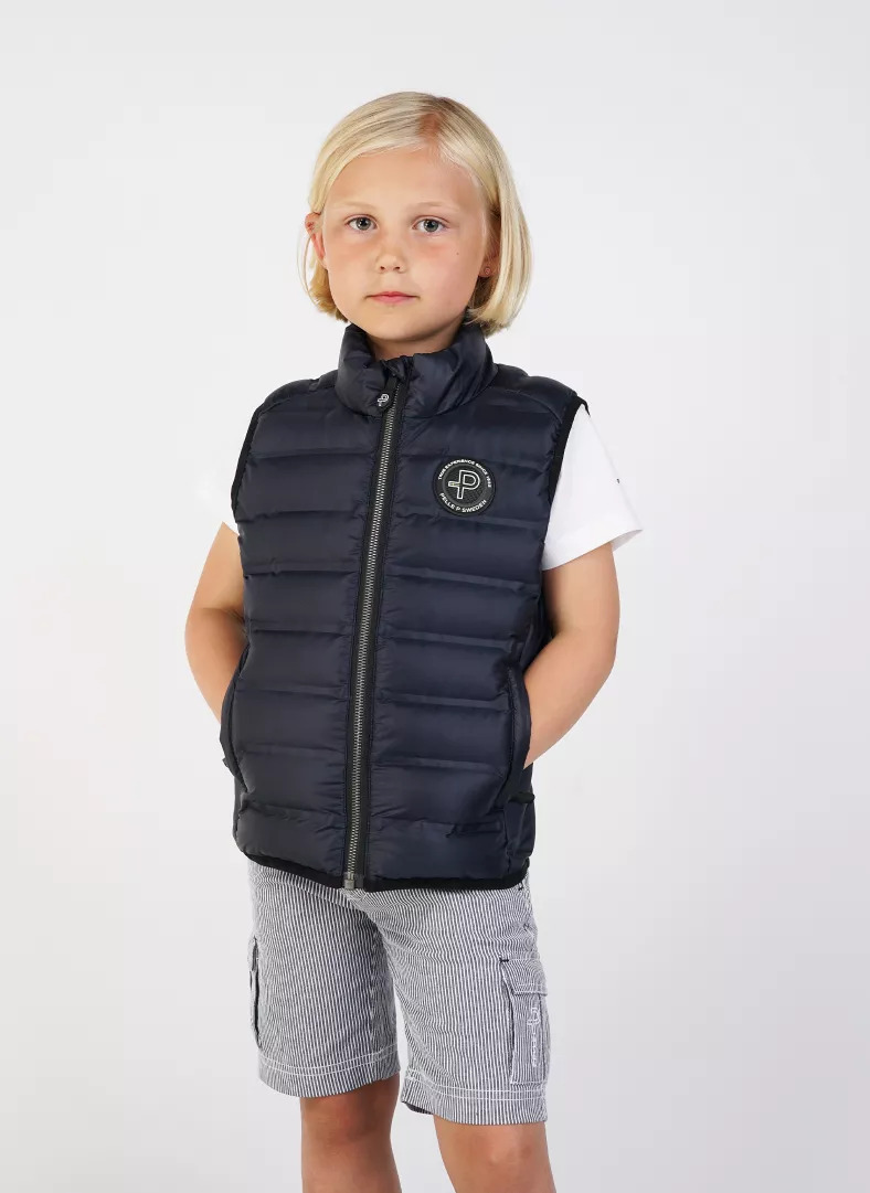 Tuulekindlast kangast valmistatud laste vest. Sellel on Thinsulate isolatsioon, mis on kerge, hästi hingav ja annab soojust. Sellel vestil on kaks lukuga suletavat esitaskut ja sisetasku. Kaunistatud P-logo kummimärgiga vasakul rinnal. Unisex.