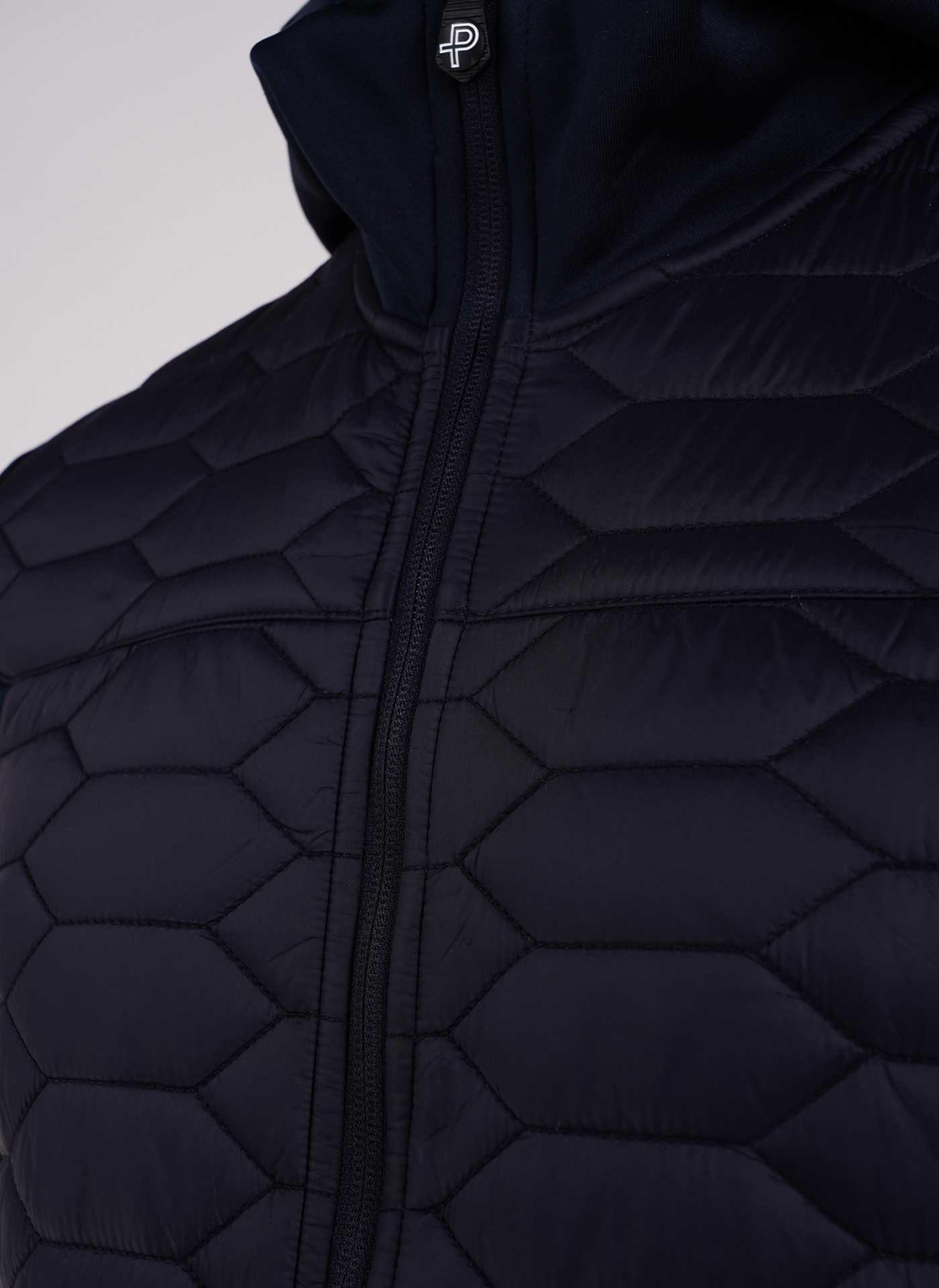 Levo Quilted kapuutsiga meeste jope on  funktsionaalne vahekiht, seest mõnusalt pehme, harjatud pinnaga, mis tagab hea soojapidavuse. Varrukad on valmistatud elastsest materjalist, mis võimaldab maksimaalset liikumisvabadust, ning kehaosa on kaetud tepitud nailonkangaga.