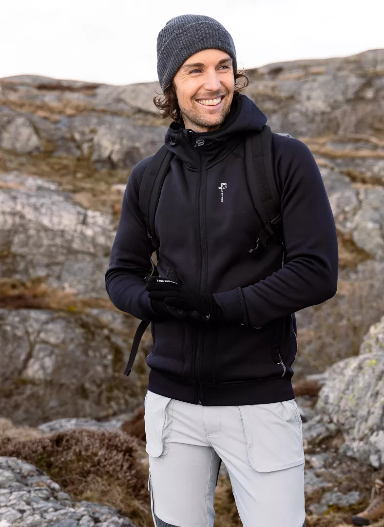See pusa on mõeldud kapuutsisõpradele, kes otsivad alternatiivi, mis sobib aktiivsemateks tegevusteks. Levo Rib Hoodie on valmistatud 95% polüestrist ja 5% elastaanist ning selle neljasuunaline venivus võimaldab liikuda vabalt ja mugavalt. Pusal on sile välispind ja pehme harjatud sisemus, mis juhib niiskust ja aitab hoida soojust. Kapuuts on täisvoodriga, randmeosad soonikkoes ning külgedel kaks lukuga taskut.