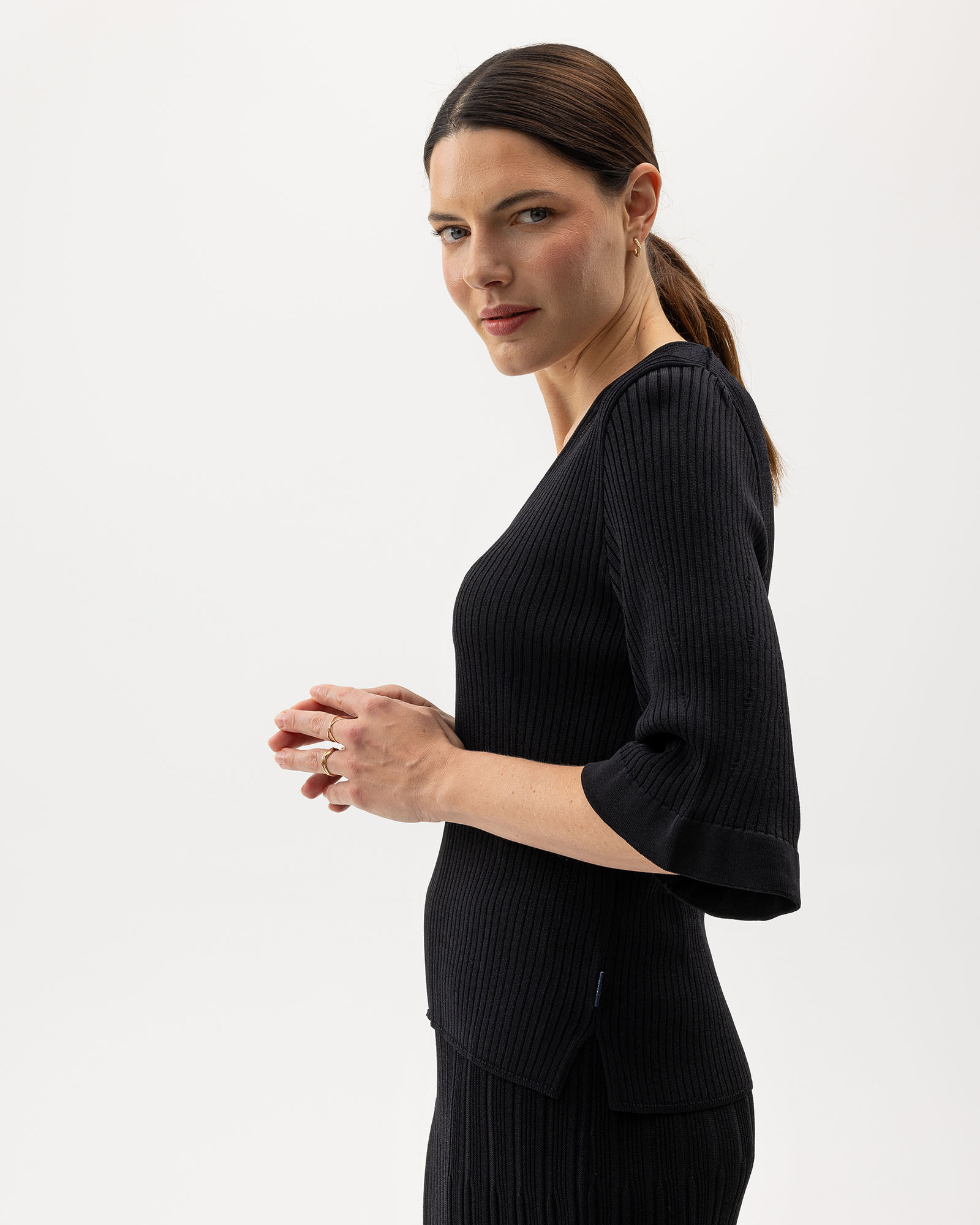 Elegantne soonikkoes top, valmistatud kvaliteetsest viskoosi ja polüamiidi segust. Viskoosi sisaldus annab pehmuse ja mugavuse.