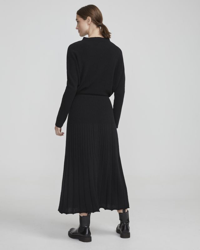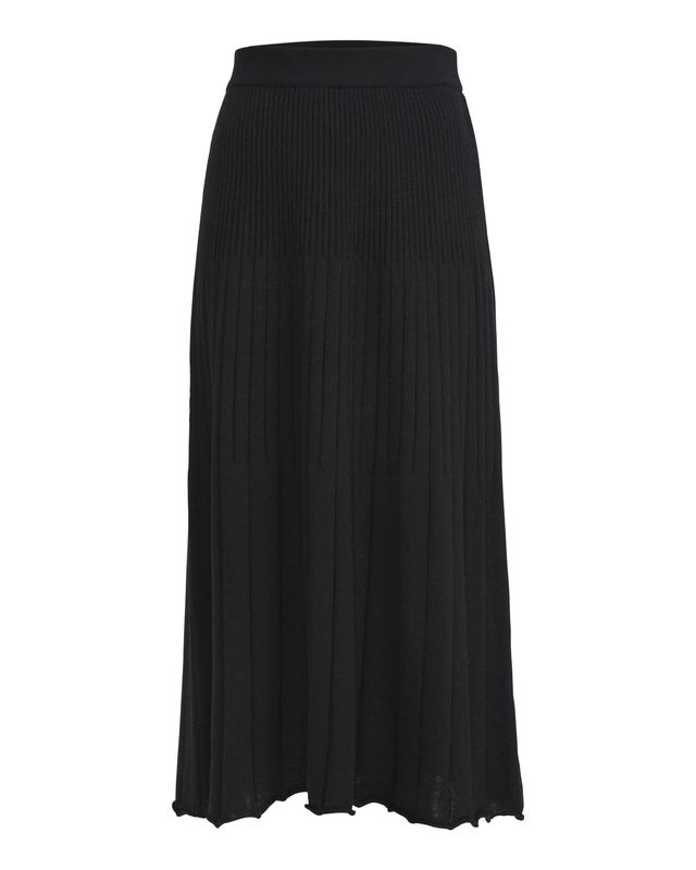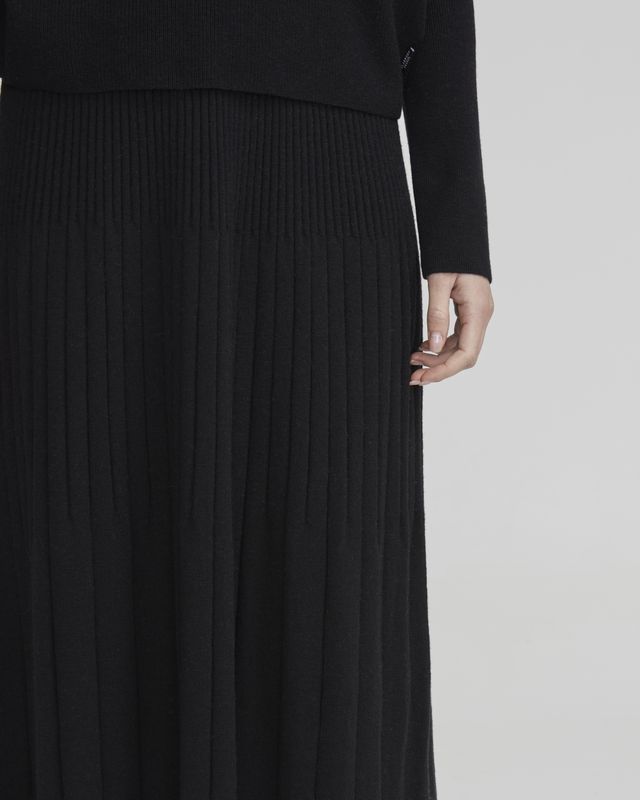 Kootud seelik 100% Extra Fine meriinovillast. Soonikkude annab seelikule volditud efekti. Mugavalt veniv vöökoht.