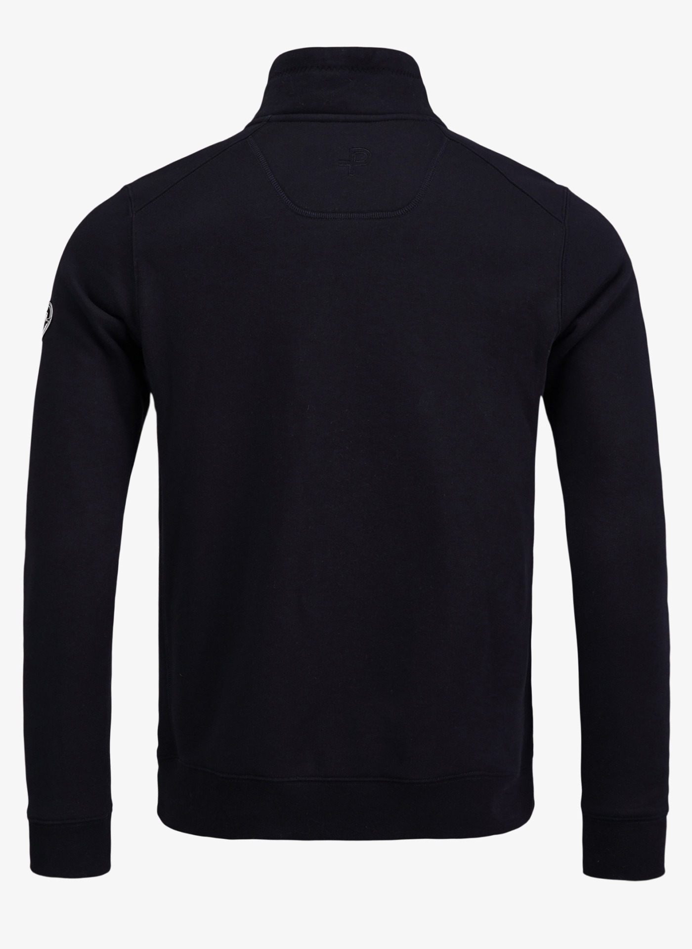 Krae on varustatud poollukuga, millel on kolmesammuline siksak-õmblus ning P-logoga lukutõmmis. Stiilsed detailid, nagu tasapinnalised õmblused, P-logo tikand rinnal ja kaeluse tagaküljel, samuti P-logo embleem vasakul varrukal, annavad dressipluusile iseloomu ja viimistletud välimuse.